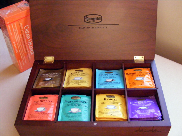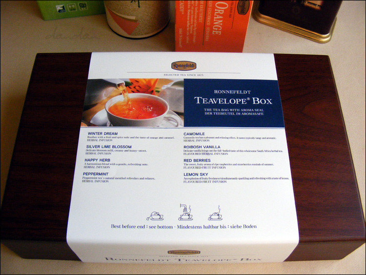 그런데, 독일이나 여기 영국 등 유럽에서는 로네펠트 우든 티 체스터에 티백이 각각 10개씩 들었는데 한국에서는 왜 죄다 8개씩밖에 들어있지 않은 것인지? 2개씩 뺀 걸 가지고 무료 시음용으로 배포하는 건 아닌가? 그렇다면 내가 받은 이 선물세트에서는 티백이 무려 16개나 빠진 셈이다.