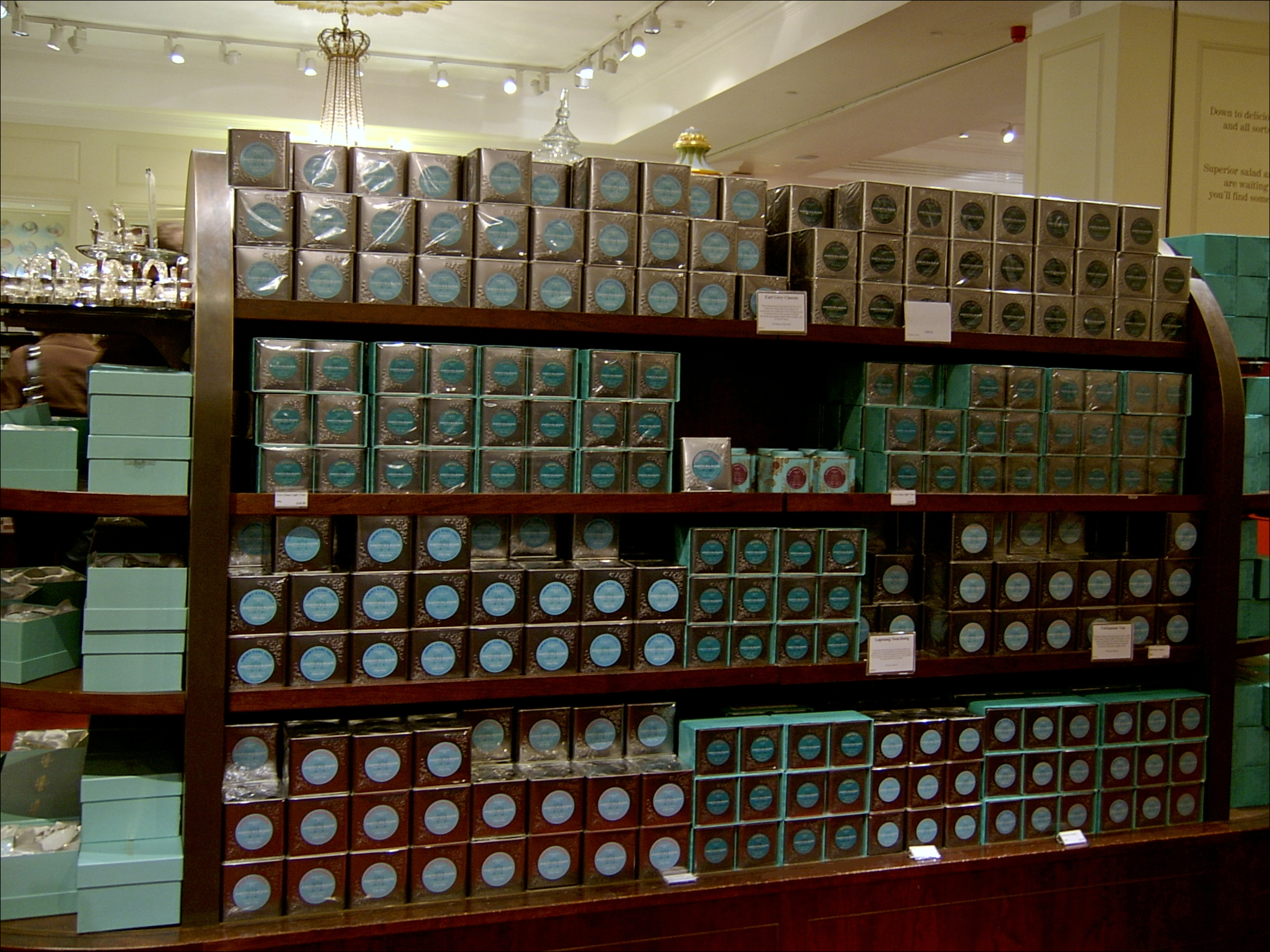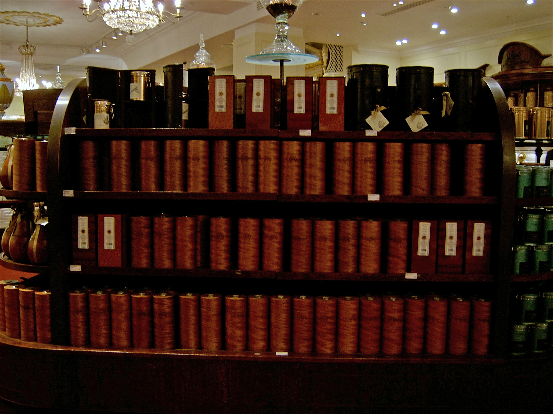 우리 같은 보통 사람들은 주로 미리 담아 놓은 홍차를 사지만, 입맛이 까다로워서 자기만의 블렌드를 고집하거나 여유 좀 있는 사람들은 이렇게 카운터에 가서 고급차를 따로 주문하기도 해요. 권여사님도 백화점 지하에서 커피 살 때 봉지에 미리 담아 놓은 것 안 사고 따로 이것저것 주문해서 섞기도 하잖아요. 차도 똑같아요. 사진에 있는 큰 통에서 손님이 달라는 대로 덜어 별도로 무게를 재서 팔아요.