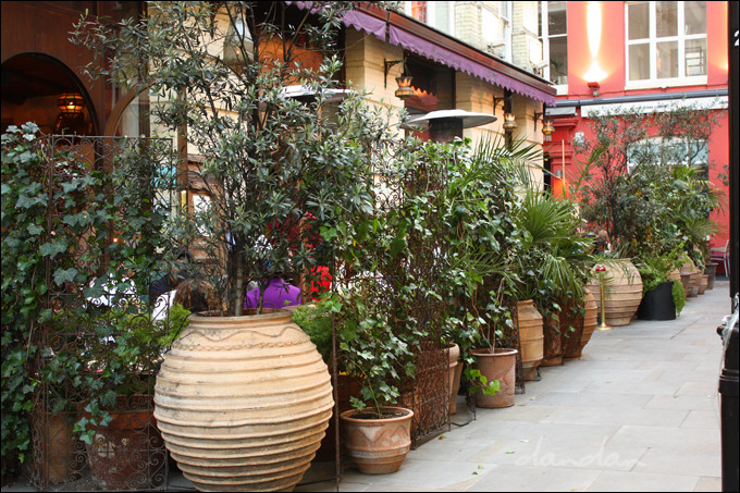 영국 출장을 오신 가필드 님을 모시고 다쓰 부처는 오늘도 또 티룸에 갔습니다. 오늘은 피카딜리 서커스 어느 뒷골목에 숨어 있는 모로칸 티룸입니다. 북적이는 피카딜리 서커스 안쪽, 자동차 소리도 들리지 않는 조용한 골목에 이런 이색적인 공간이 다 숨어 있었습니다. 각기 다른 토기 화분들을 이렇게 일렬로 늘어놓기만 해도 제법 그럴듯해 보이는걸요.