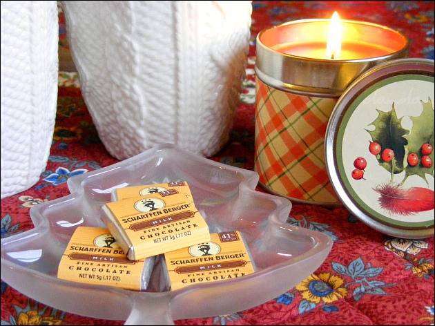 쵸콜렛 한 조각 천천히 씹어 삼킨 후 홍차 한 모금 입안에서 우물거려 보라. 어떤 여인들은 쵸콜렛 삼키는 순간이 오르가즘보다 낫다고 말할 정도다. 쵸콜렛은 가급적 낱개 포장된 것이 좋다. '옷 벗기는' 즐거움에, 담았을 때 폼도 더 나고 양 조절하기도 쉽기 때문이다. [쵸콜렛·향초·접시-불량소녀 님 기증]