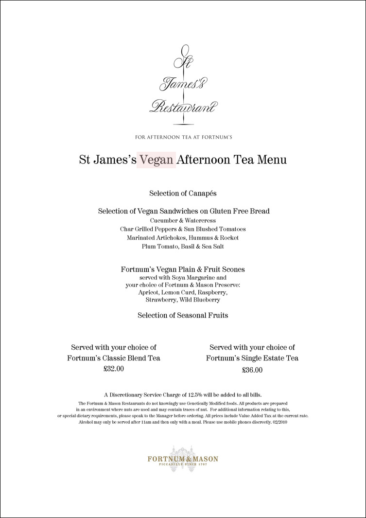 아래 첨부한 <포트넘 앤 메이슨> 티룸의 메뉴를 잘 보시라. 특히 분홍색 상자 두른 단어를.