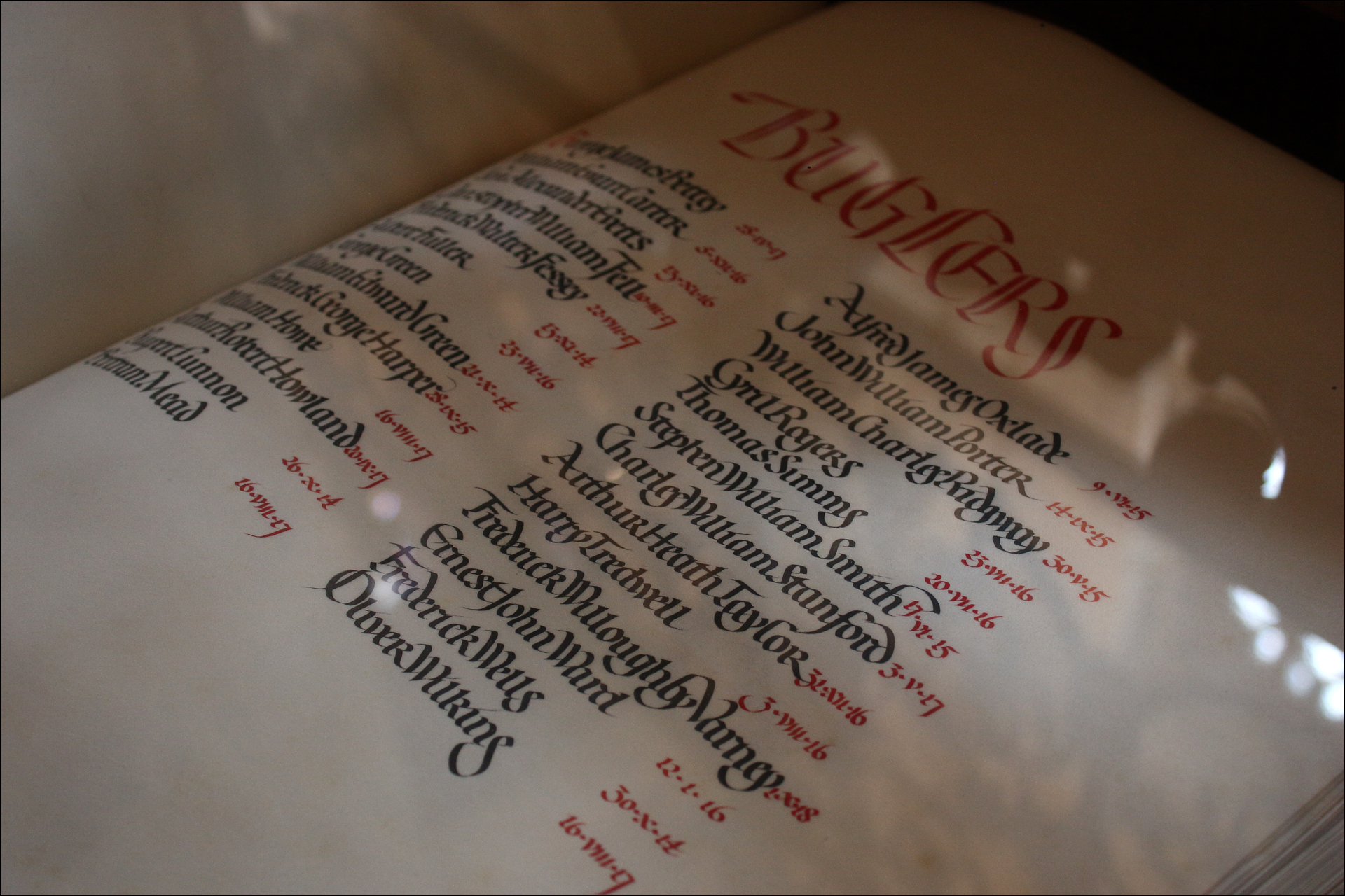 영국에서는 어딜 가나 이렇게 전사자 한명 한명의 이름을 정성껏 적어 놓거나 새겨 넣은 것을 볼 수 있어요. 사회 전체가 자국의 전사자들을 참으로 잘 챙기고 기리는 분위기입니다. 부러운 풍토입니다. 손글씨가 참 예쁘죠?