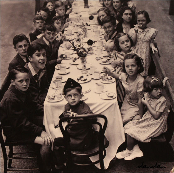 식탁보도 다 깔았다. 아이들이라도 꼭 제대로 된 찻잔과 받침에 차를 내준다. 전쟁이 막 끝났는데도 꽃병에 꽃까지 다 담았다.