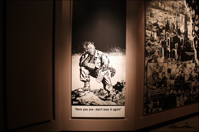 한국전쟁 코너도 마련돼 있어 반가웠다. 미국인들뿐 아니라 영국인들도 6.25때 많이 희생되었다는 사실을 잊지 말자. 마네킹을 잘 보면 서양인과 한국인 골격이 다른 것이 나름 신경을 쓴 티가 난다. 한국의 백화점들은 한국인한테 옷 팔면서도 코쟁이 마네킹을 갖다 세우는데.