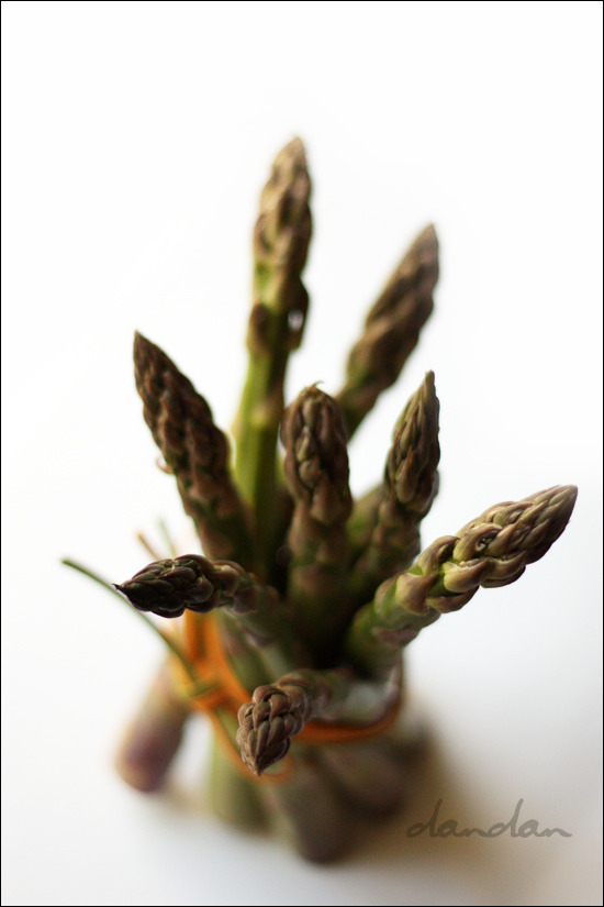 • 대각선 방향으로 아스파라거스 두어 개를 얹는다.