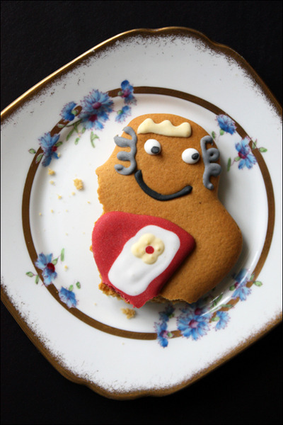 찻상에 앉아 페어리 케이크 하나 집어 먹으려는 순간, 여왕님이 등장하셔서는 "나 잡아 봐~라~" 하십니다. 다쓰베이더가 깜짝 선물로 수퍼마켓에서 사왔습니다. 진저브레드 맨이 아니라 진저브레드 퀸입니다. 진저브레드는 아주 오래 전부터 각 국가별로 다양한 형태로 만들어 즐기고 있었는데, 이를 사람 모양 비스킷으로 만들어 먹기 시작한 건 네덜란드와 잉글랜드라고 합니다.