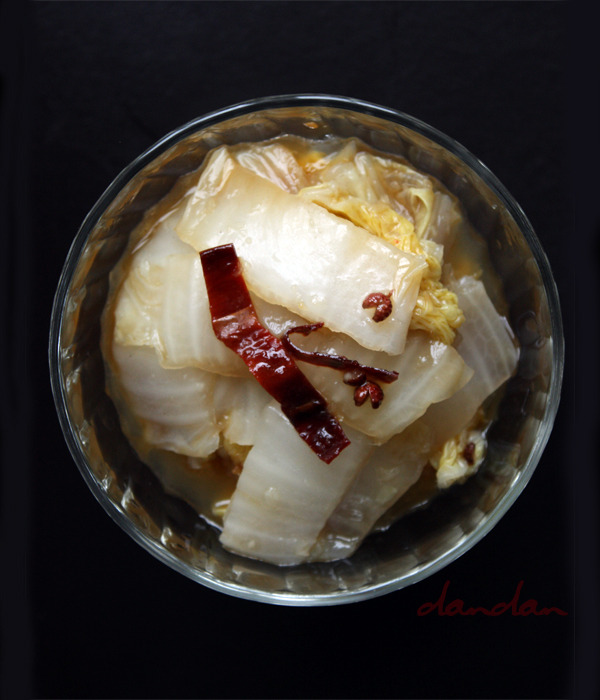 이것이 문제의 그 화쟈오, '쓰촨 후추'와 팔각입니다. 쓰촨 후추는 향은 마치 라벤더 같은데 씹으면 유자향이 나고 신기하게도 혀끝에 전기가 오르는 것처럼 파르르한 떨림이 생기면서 한참 동안 아릿합니다. 맛이 맵다기보다는 향이 그윽하고 알싸한 느낌이 나서 쓰는 것 같아요. 팔각은 회향fennel seeds과 비슷한데 좀 더 달고 웅숭깊은 우아한 향이 납니다. 아래에 제이미의 가짜 김치 사진 나갑니다.