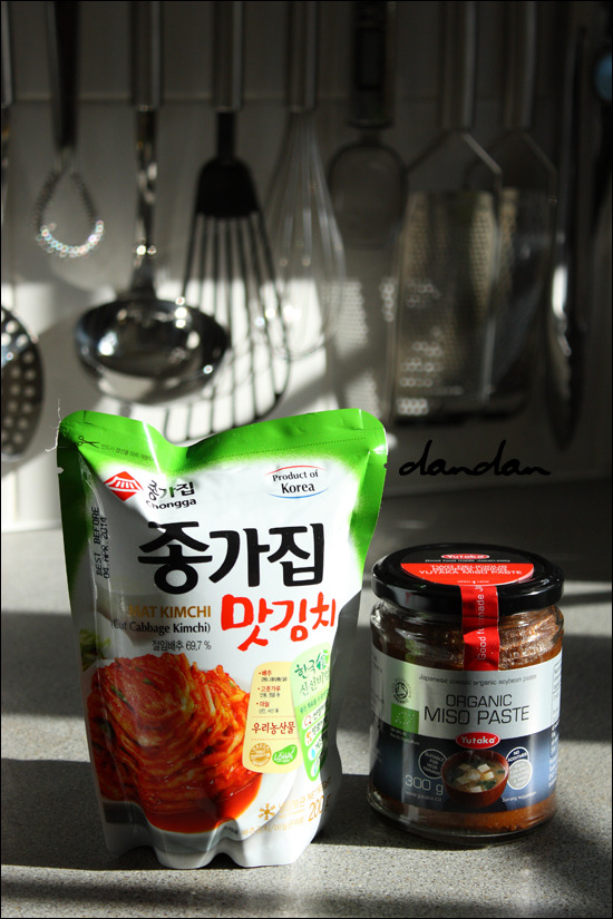 하길래 작은 봉지 김치 하나 사다가 봉지가 빵빵 부풀 때까지 두었습니다. 지금쯤이면 맛이 좀 들었을 것 같네요. 한식을 잘 안 해먹어 집에 김치도, 된장도 없어요. 김치는 겨우 구했는데 한국 된장은 못 구했습니다. 안타깝지만 일본 미소 된장을 대신 쓰도록 하겠습니다. 한국 된장보다 성분이 더 좋긴 합니다. 캐임브리지 대학 출신의 일본인이 1995년에 영국에 설립한 회사 제품입니다. 한식을 기껏 알렸더니 재미는 딴 사람이 보게 생겼네요. 미소 된장은 영국의 일반 수퍼마켓에서도 쉽게 구할 수 있거든요. 하여간 영국 수퍼마켓에서 '제대로' 만든 우리 한국산 한식 재료를 볼 수 있게 되기를 간절히 바랄 뿐입니다. '제대로'라는 단어가 중요합니다.