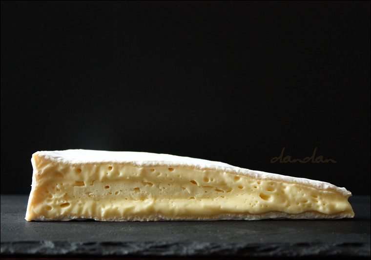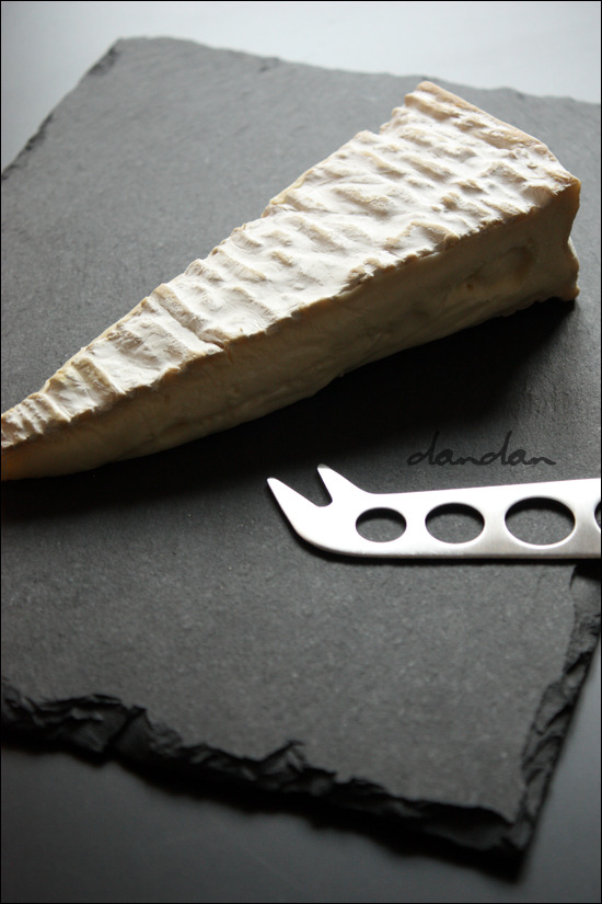 숙성 브리는 껍질 표면에 갈색 기운이 돌면서 다소 거칠고 메말라 보이는 반면, 속살paste은 농익을 대로 농익어 냉장고에서 꺼낸 지 수 분이 지나면 어린 브리보다 훨씬 더 많이 흐릅니다. 하도 흐르고 끈적거려 브리 전용 칼을 써도 자르기가 힘듭니다. 끝을 조금 잘라 냈는데, 속살이 흘러 접시에 많이 들러붙었죠. 풀처럼 찐득해 접시에서 떼어 내기도 힘듭니다.