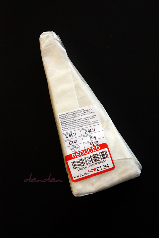 정통이라서 좀 비쌉니다. 전통 제법으로 만든 프랑스 AOC나 AOP 치즈들은 원래 값이 좀 나갑니다. (둘 다 같은 뜻. 전자는 프랑스 고유 표기, 후자는 유럽연합 권장 표기. 영국 치즈들은 PDO로 표기.) 비싼 치즈라 싸구려 비닐 따위에 싸질 않고 이렇게 고급 왁스 종이에 싸서 팝니다. 단단은 이렇게 비싼 치즈를 사 먹는 고급스런 인간입니다. 에헴.
