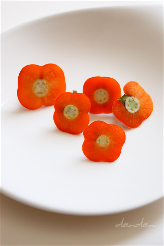 고추 꼭지로 만들어 준 빠알간 양귀비poppies.