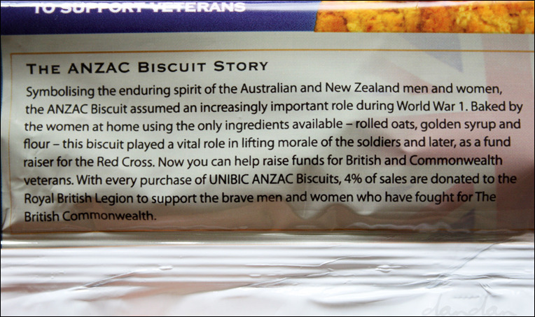 손에 넣을 수 있는 재료라곤 밀가루, 납작 누른 귀리, 골든 시럽이 전부였던 고향의 아낙들이 이 세 가지 재료만 갖고 정성껏 비스킷을 구워 전장의 남정들에게 전했다는 애틋한 이야기. 그리고, 이 비스킷으로 얼마나 많은 뉴질랜드와 호주의 군인들이 위로를 받고 사기를 진작할 수 있었는지에 관한 짧막한 이야기가 담겨 있습니다.