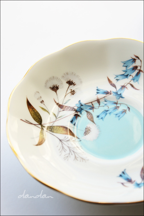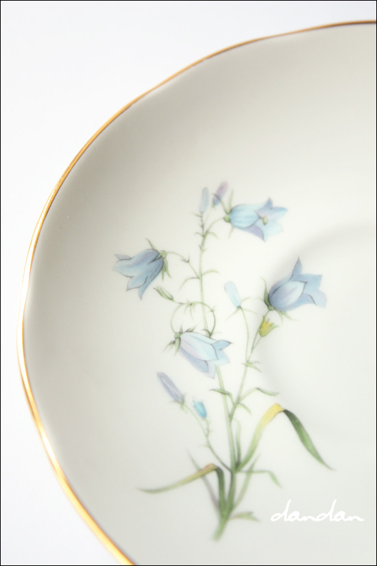 이건 로얄 알버트 찻잔에 딸린 잔 받침입니다. 영국 브랜드 찻잔에 많이 등장하는 이 꽃은 '해어벨'이라고 부릅니다. 블루벨보다는 꽃잎이 더 얇고 하늘하늘한데다 꽃 방향이 제각각, 다소 엉뚱한 구석이 있는 재미있는 녀석입니다. 꽃잎이 짧고 급격히 벌어져 좀더 활달하고 경쾌해 보이기도 하고요. 바람에 하늘하늘 흔들리는 모습을 보면 제 마음이 다 간지러워집니다.