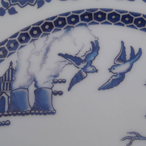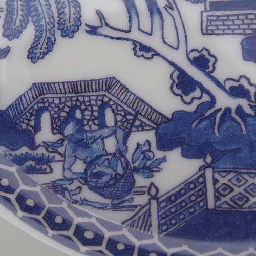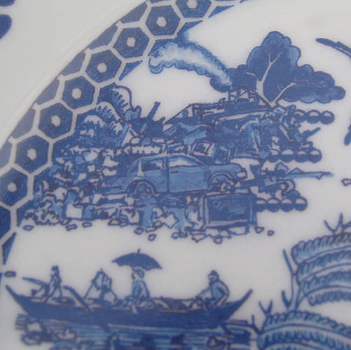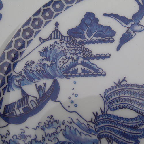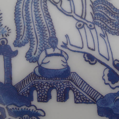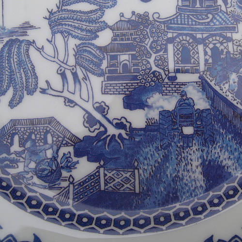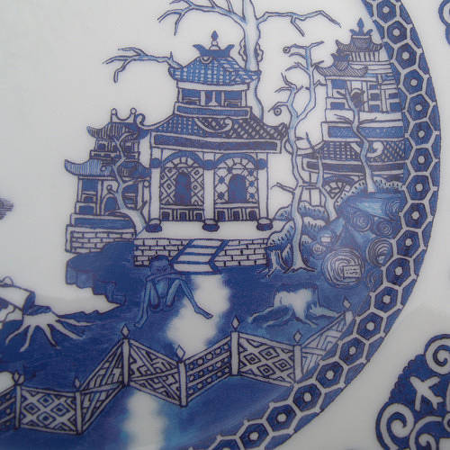 한국에서도 2년쯤 전에 이마트가 처어칠 사로부터 이 패턴 그릇을 세트 상품으로 직수입해 저렴한 값에 푼 적이 있었죠? 한국에 이 패턴으로 된 양식기 홈세트 갖고 계신 분 더러 계실 겁니다. 중국풍 그림을 담은 양식기라니, 뭔가 모순적이면서 재미있죠. 제가 시골 마을 작은 그릇 가게에서 이 접시를 살 때 영국인 가게 주인이 매우 흥미로워 했어요. 아마도 '하하, 중국인이 영국산 중국풍 그릇을 다 사다니, 신기하네.' 생각했겠지요. 그래서 제가 그냥 중국인인 양 "이 그릇은 중국음식 담기에 안성맞춤이다."라고 해줬어요. 여기 사람들은 중국인과 한국인을 구별 못합니다. 한국인은 그냥 다 중국인이에요. 처음에는 발끈 성내면서 꼬박꼬박 "아냐, 나 한국인이야!" 고쳐줬는데요, 지금은 그냥 씨익 웃고 맙니다. 어휴, 귀찮아. 사진을 좀 확대해서 패턴을 자세히 들여다 보도록 하지요.
