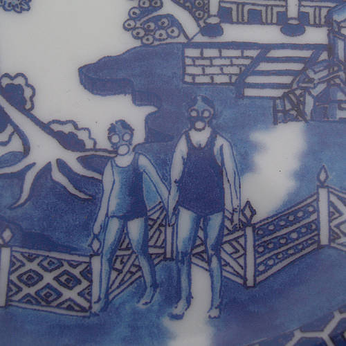 이건 지난 2012년에 런던 지하철 탄생 150주년을 기념해 낸 아프터눈 티용 3단 접시였습니다. 잘 보세요, 지하철이 막 지나가고, 육교가 있고, 역사驛舍가 있고 그럽니다. 다음은 지구와 환경 문제에 예민한 어느 까칠한 작가의 연작물. 골 때리게 재미있습니다. 자세히 들여다보세요.