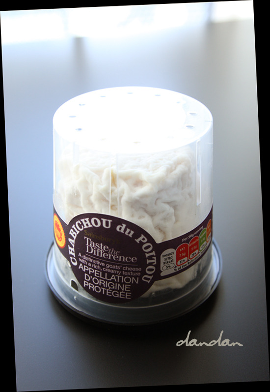 오오, 카리스마 넘치죠? 수퍼마켓 치즈 선반에서도 단연 돋보이더라고요. 포장에 "Full fat mould ripened soft cheese made with pasteurised goats' milk"라고 써 있는데요, 지방을 빼지 않고 전지유 그대로 쓰되 안전을 위해 저온살균을 한다는 뜻입니다. "Mould ripened"는 껍질의 흰곰팡이에 의해 겉에서부터 안으로 숙성해 들어온다는 소리이고요.