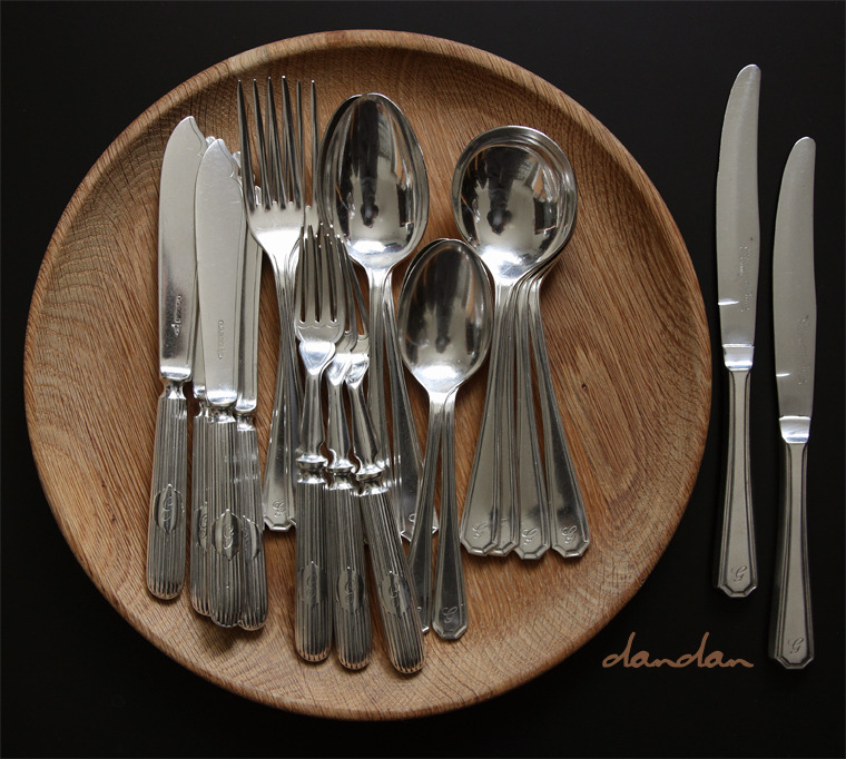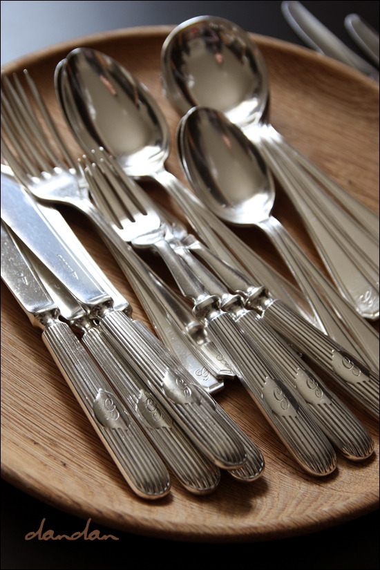 단단은 영국 은도금 커틀러리cutlery를 많이 갖고 있습니다. 그냥 많이도 아니고 정말 많이 갖고 있습니다. 채리티 숍에 가면 이런 것들이 그냥 널브러져 있어요. 식사용 날붙이 24개가 우리돈 만원도 안 하길래 또 집어왔습니다.