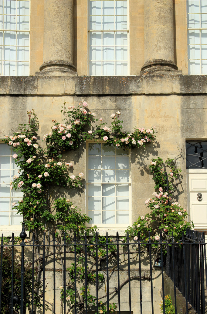 로얄 크레센트의 어느 집 창에 둘러진 장미 넝쿨.