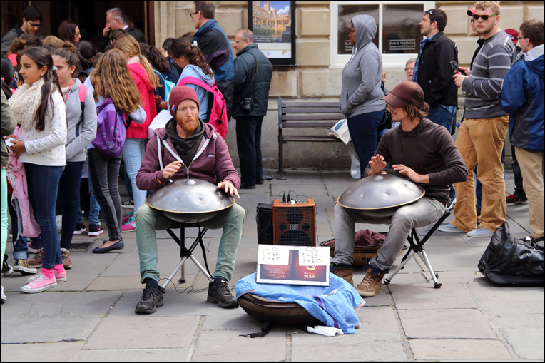 바쓰 애비 앞 거리의 악사들. '항hang' 연주자들입니다. 생기기는 꼭 태곳적 악기처럼 생겼는데 2000년에 스위스의 어느 악기 회사가 개발한 새 악기입니다. 인간이란 참으로 놀라운 존재이지요. 어떤 악기든 개발이 되자마자 금세 잘 다루는 연주자가 생깁니다. 인간의 손으로 할 수 있는 수많은 경이로운 일들 중 저는 악기 연주를 최고봉으로 꼽습니다. 항 소리를 한번 들어보세요. 스틸팬(스틸 드럼)보다 좀 더 명상적이고 신비로운 소리가 납니다. 음계별로 저도 몇 개 갖고 싶네요.