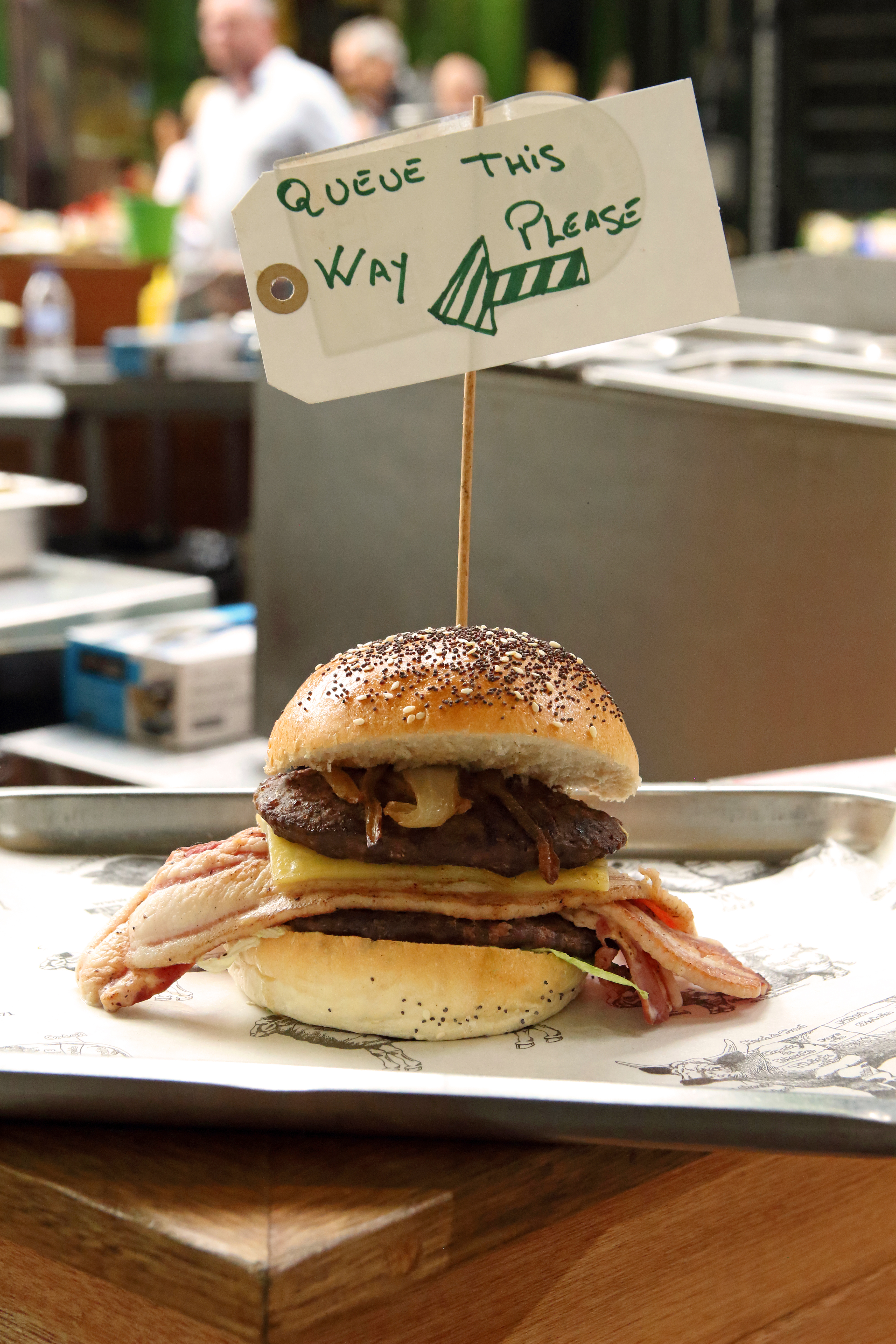 와아, 이렇게 실한 버거는 처음 봤습니다. 패티 두 장, 두툼한 베이컨 세 장, 두껍게 썬 영국산 진짜 체다 한 장, 잘 지진 양파와 상추, 번도 아주 제대로네요. 점심 시간에는 줄을 서야 먹을 수 있나 봅니다. 다음 방문 때는 꼭 사 먹어보렵니다. (가만, 경이로움 님이 추천하신 피쉬 앤드 칩스도 맛봐야 하는데?)