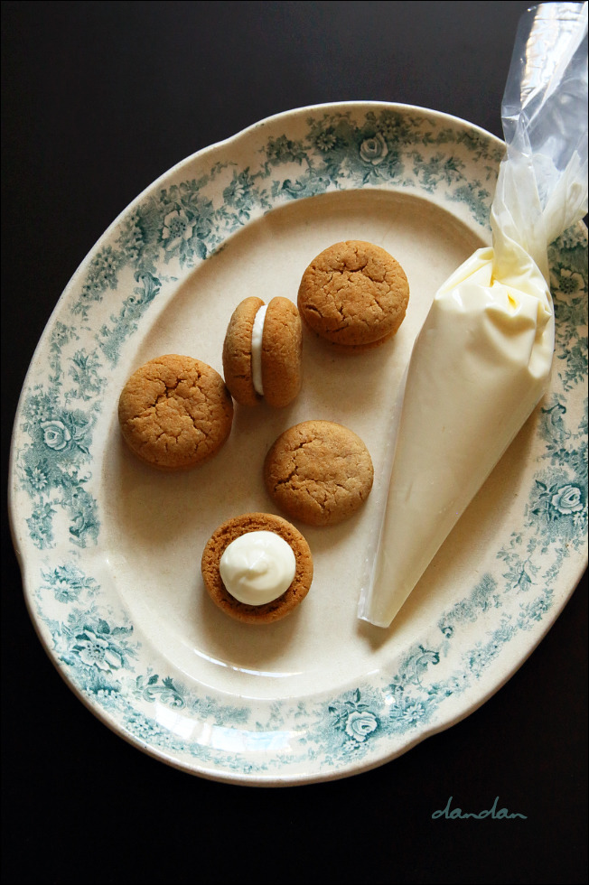 9. 치즈 크림으로 '샌드'한 뒤 아이싱 슈가를 소량 뿌려 낸다. 끝.