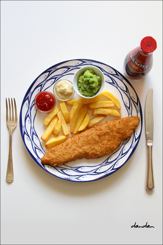 레몬 조각을 내는 집도 많지만 원래는 영국식 몰트 비니거를 곁들이는 것이 정석입니다. 이 몰트 비니거가 생선, 튀김옷과 어우러질 때 나는 독특한 풍미가 있는데, 저는 이것 때문에 피쉬 앤드 칩스를 먹습니다. 이 향이 사무치게 그리울 때가 있어요. 혹시, 영국에 체류하셨던 분들 중에 'salt & vinegar' 맛의 특이한 감자칩crisps 즐기셨던 분 계세요? 그게 바로 튀김과 몰트 비니거 맛이죠. 저도 감자칩 맛 중에 'salt & vinegar'를 가장 좋아합니다. 처음에는 낯설고 그 맛이 강렬해 놀라기까지 하는데, 익숙해지면 헤어나오지 못 합니다. 중독성 있어요. 영국이나 영연방 국가에서 맛볼 수 있죠.