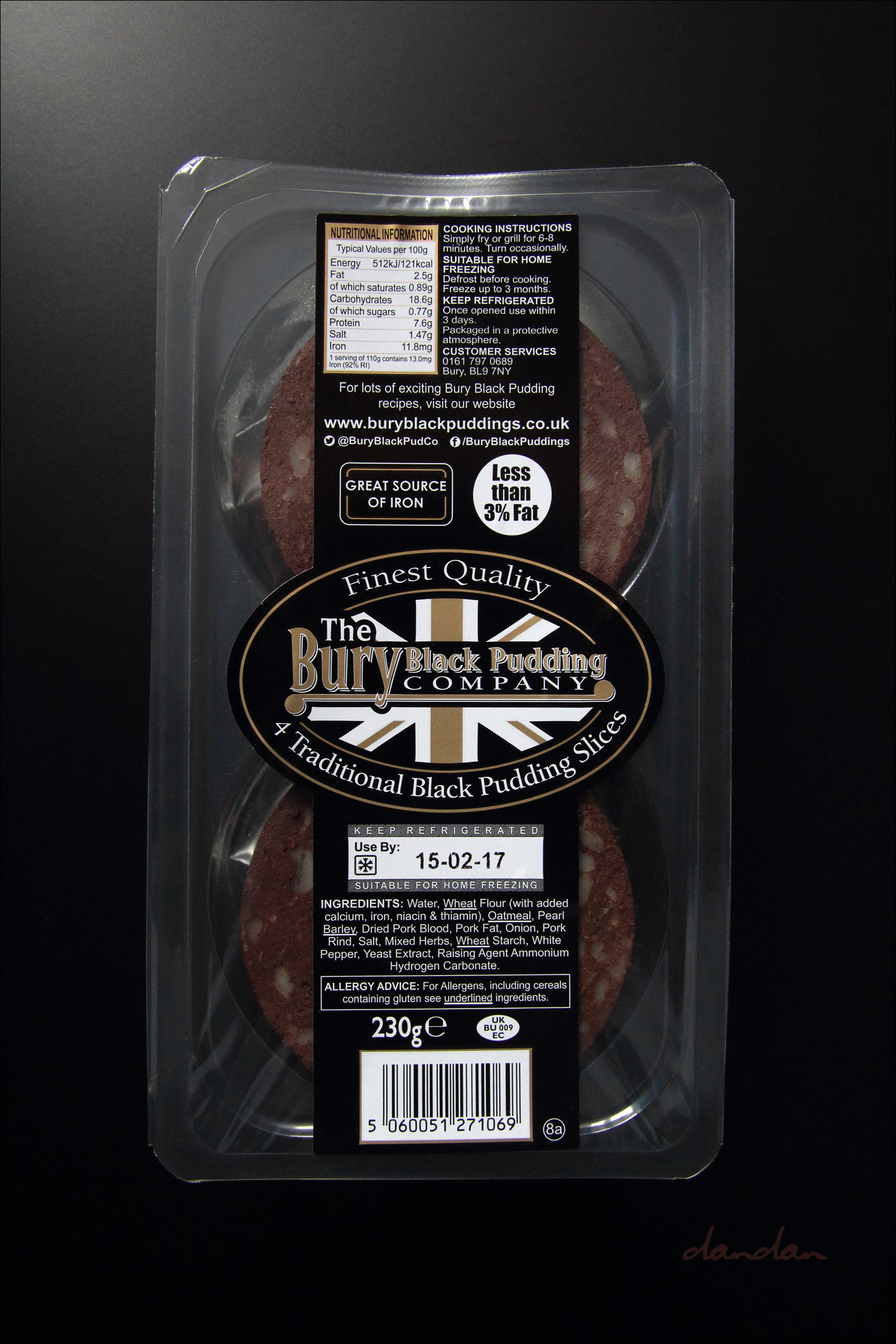 <The Bury Black Pudding Company>의 블랙 푸딩 성분: