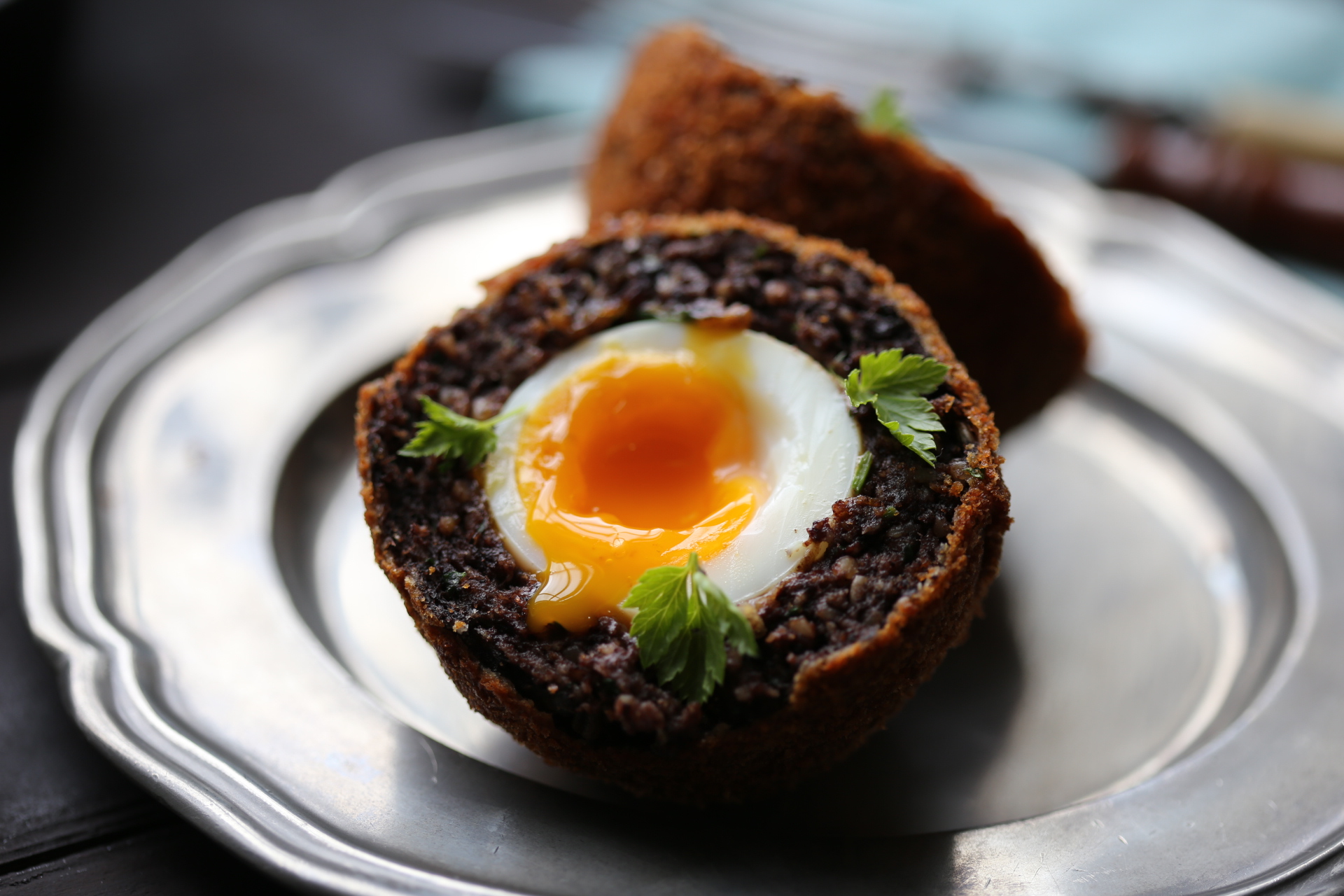 ▲ 반 가른 블랙 푸딩 스코치 에그.