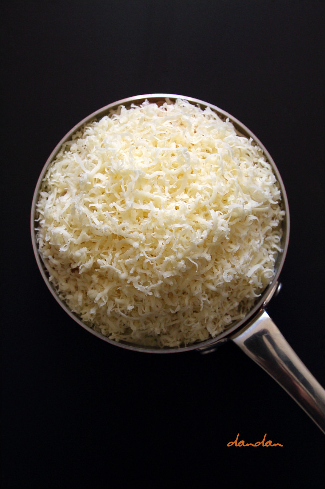 ▲ 딜 소스를 다시 소량 끼얹은 뒤 북북 간 체다를 듬뿍 얹어,