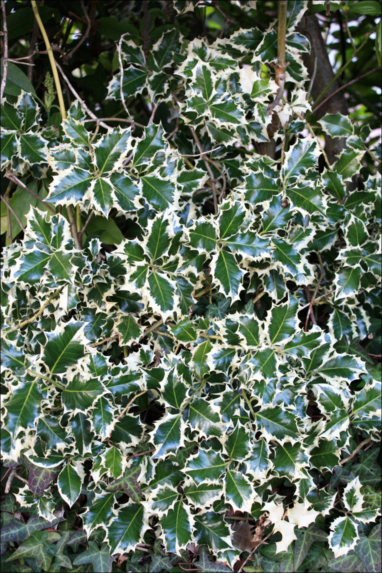 잎 가장자리에 이렇게 화사한 크림색이 도는 녀석들도 있고요. 색도 곱고 윤기도 잘잘, 한겨울에 길거리에서 이런 '럭셔리'한 광경을 보다뇨. 아래에 마침 아이비도 같이 있네요.