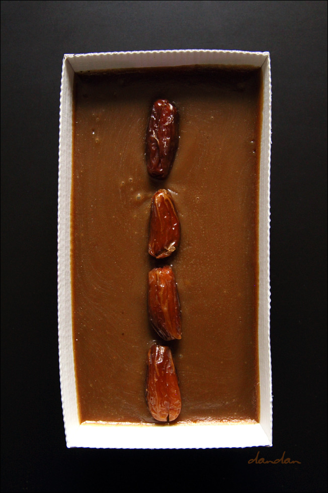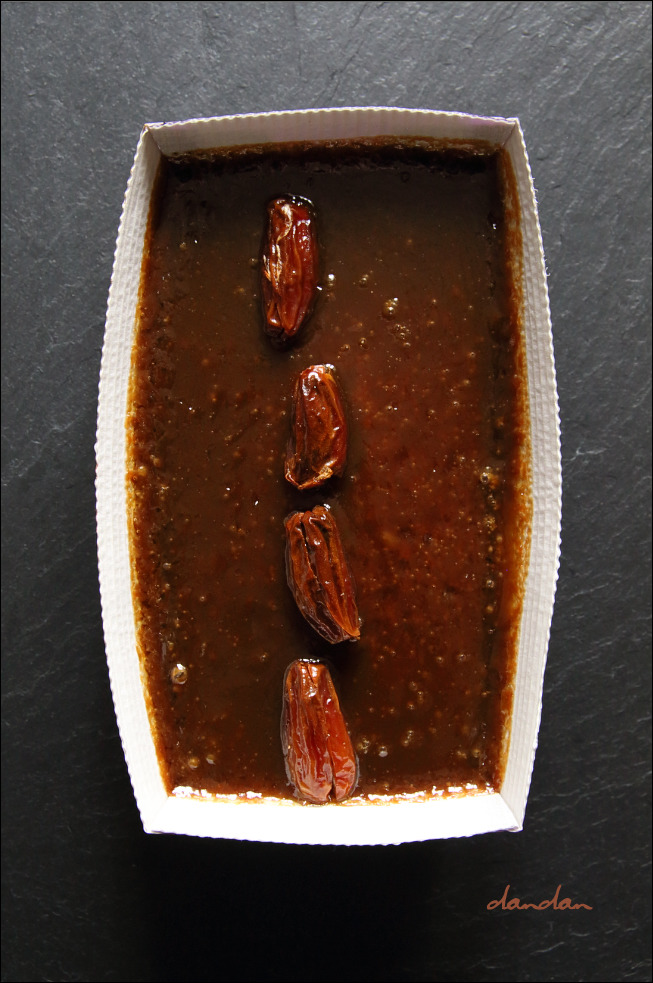 ▲ 토피 소스가 부글부글 끓어 대추야자 열매dates 줄이 삐뚤빼뚤해졌다.