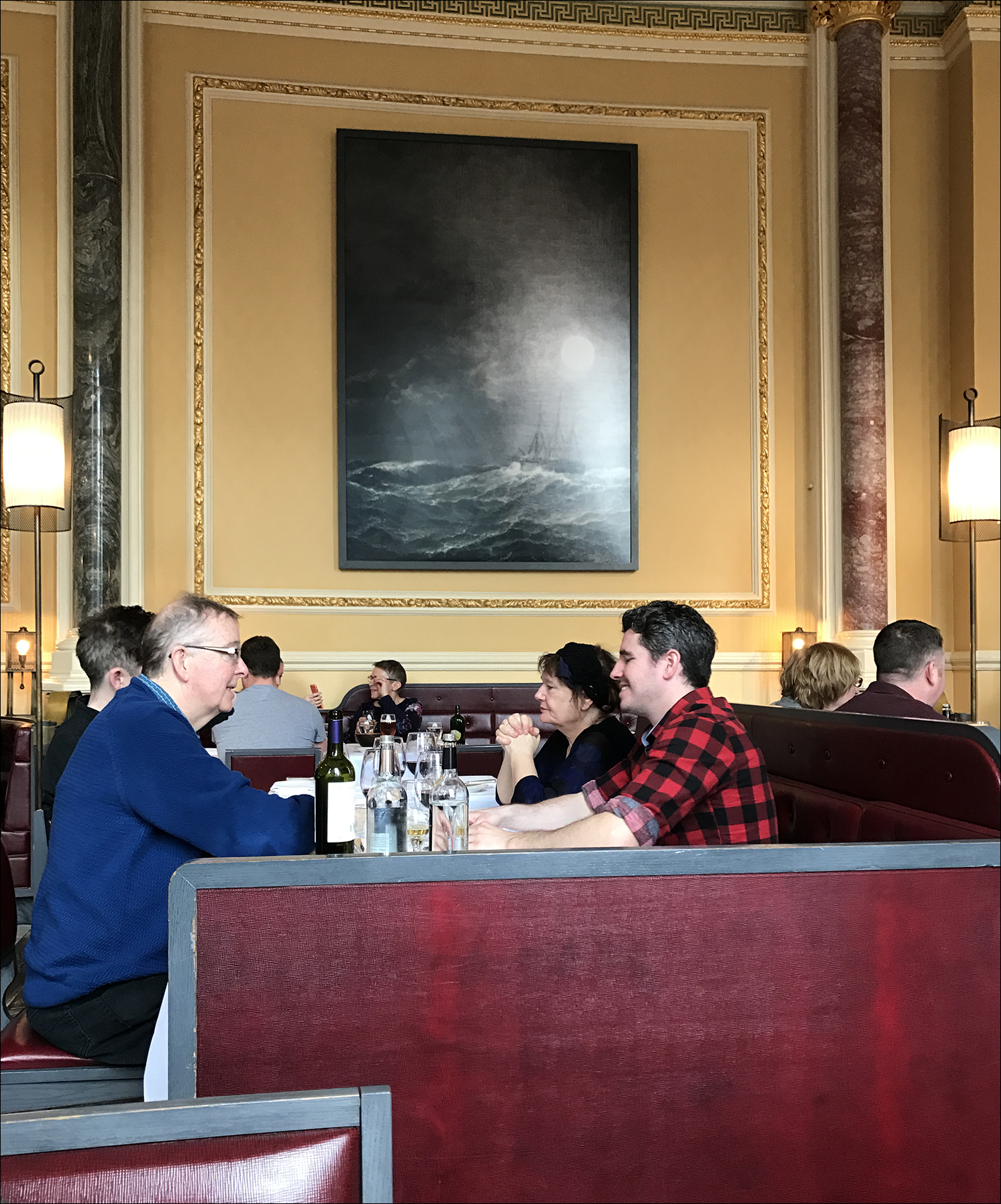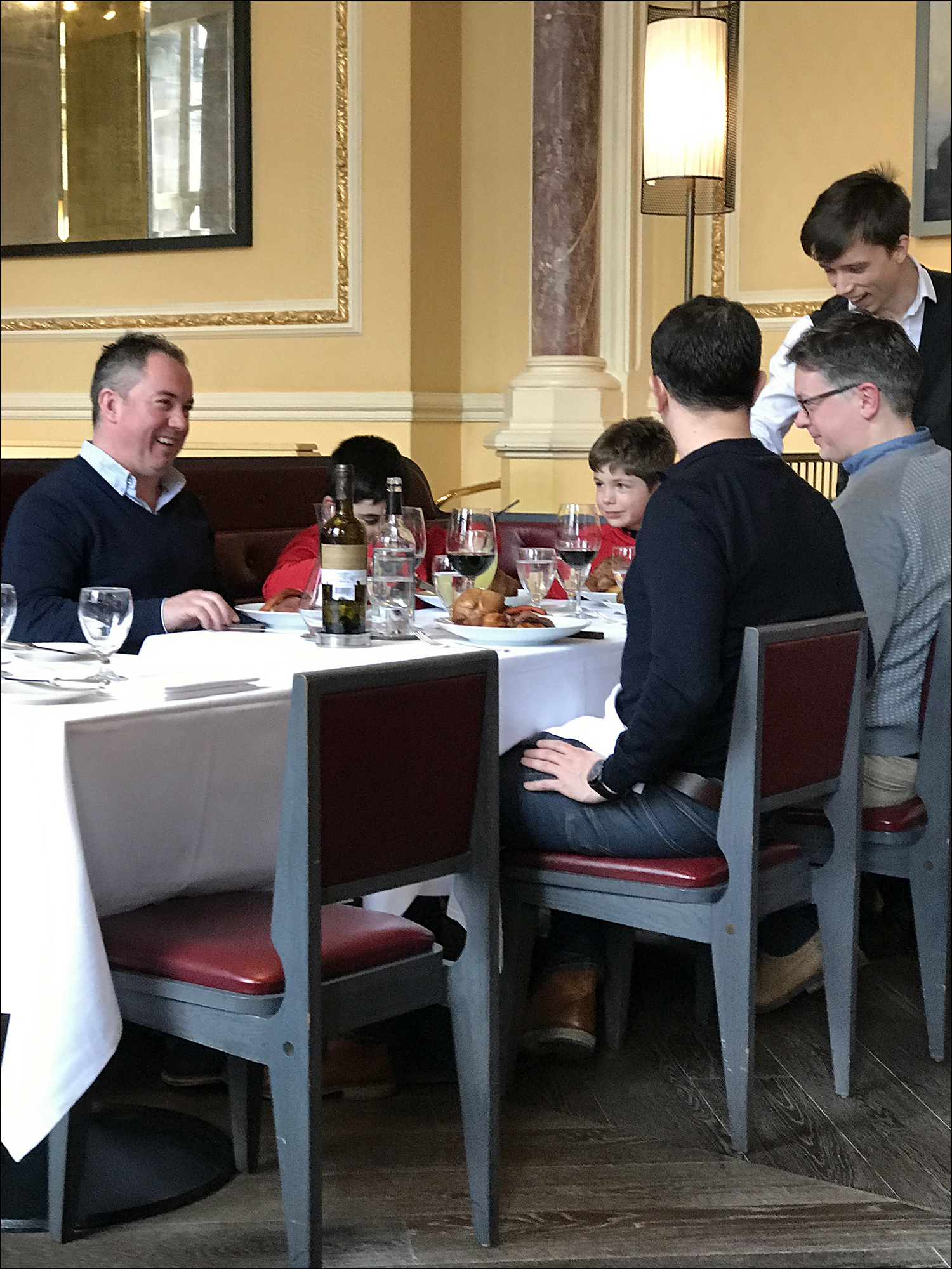 여긴 형제나 친구들이 아이들을 데리고 온 것 같네요. 영국의 파인 다이닝 레스토랑에서는 여간해서 아이들을 보기 힘든데 선데이 로스트 시간만은 예외입니다. '선데이 로스트 = 흩어졌던 가족들이 일요일에 한데 모여 먹는 음식'이라는 고정관념이 있거든요. 이런 데 올 때는 보통 넥타이 없는 셔츠에 쟈킷을 걸친 '스마트 캐주얼' 정도는 입어 주어야 하는데, 가족들이 모여 선데이 로스트를 먹을 때는 복장 규정도 느슨해지나 봅니다. 다들 편한 평상복을 입고 왔네요. 스웨터(영국과 영연방에서는 '점퍼jumper'라고 부릅니다.) 차림의 남성들이 많이 보였습니다.