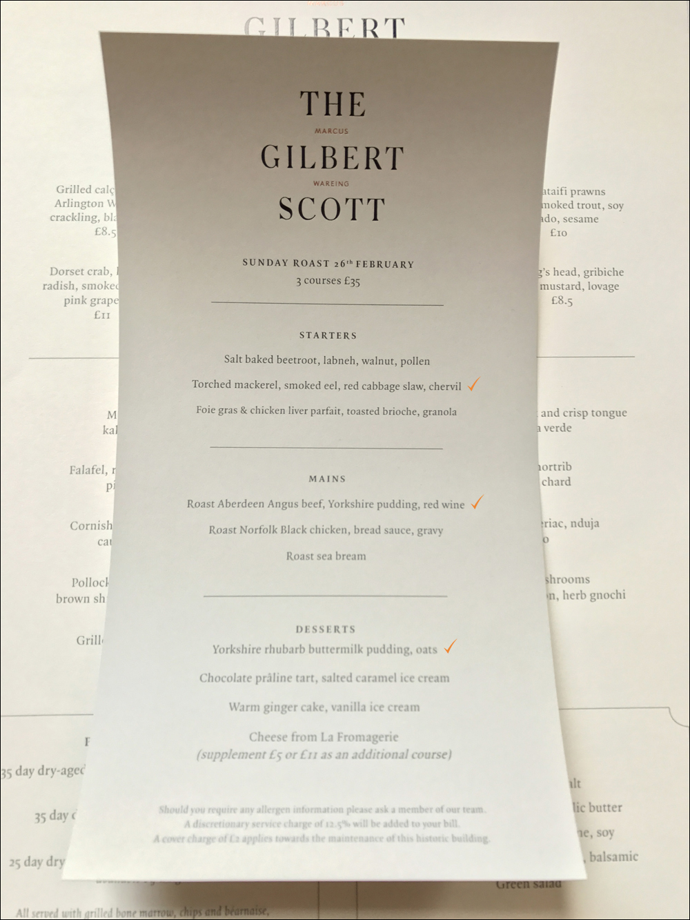 일요일이므로 두 사람 중 한 명은 선데이 로스트를 주문했고,