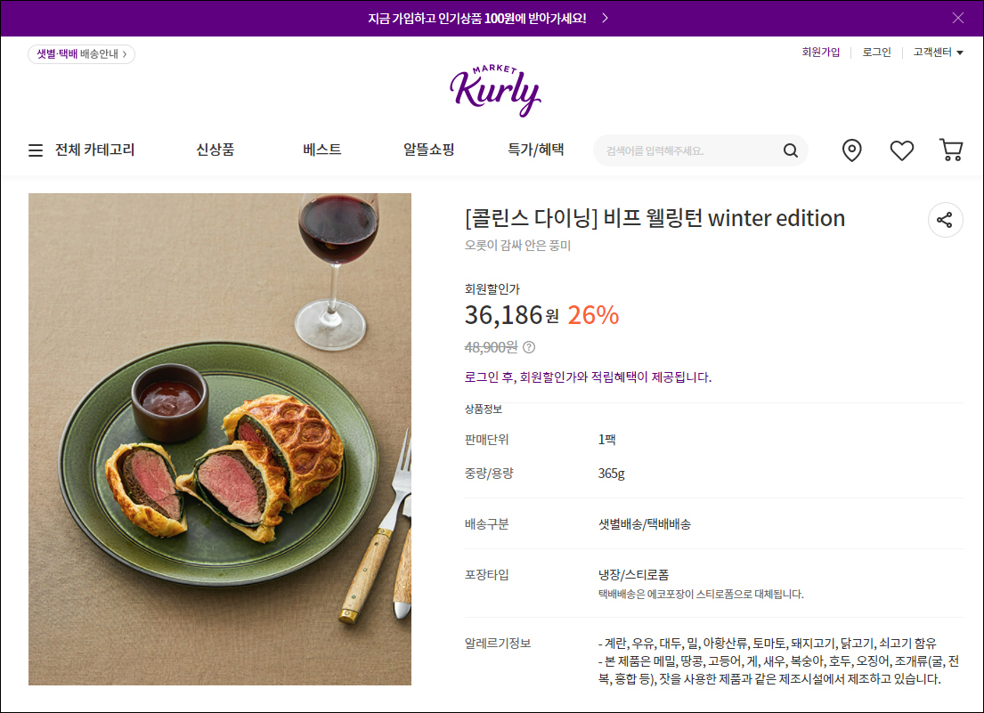 <마켓 컬리>가 글쎄 파티 시즌을 맞아 만들기 까다로운 비프 웰링턴을 냉장 레디 밀ready meal 형태로 다 팝니다. 한국에서 비프 웰링턴 레디 밀을 다 보다니, 허허, 오래 살고 볼 일이네요. 파인 다이닝 레스토랑에서는 이미 내고들 있었지만요. 영국에서도 가정집에서 이거 만들어 내면 다들 폭풍감동합니다. 영국은 한국보다 고기값이 싸긴 하지만 어쨌거나 귀한 부위이니 재료비를 꽤 들여야 하고, 솜씨도 좋아야 하고, 시간과 정성도 많이 들여야 하거든요.