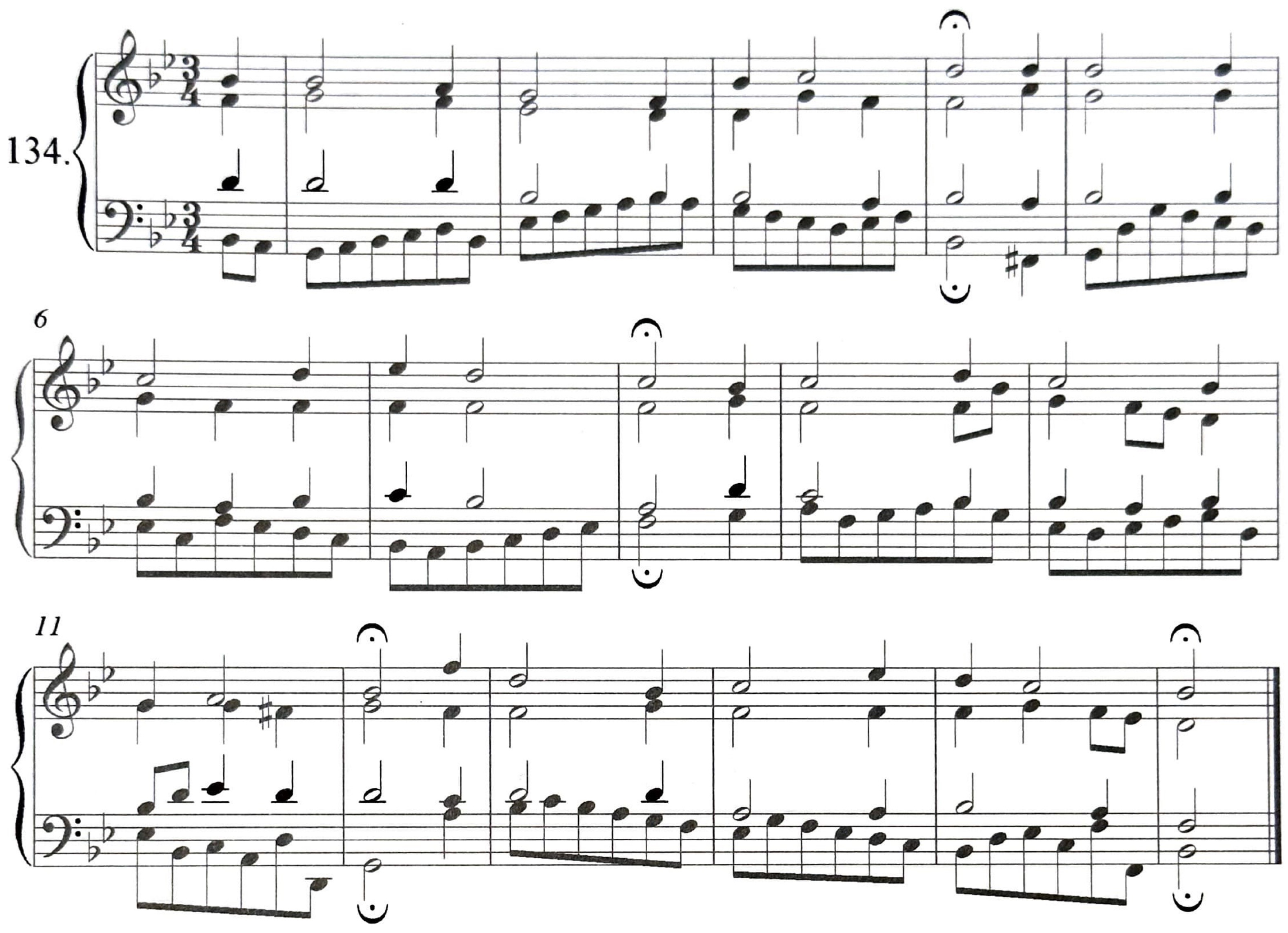 그런데 재즈나 대중음악에서의 이런 워킹 베이스는 저 옛날 바로크 시대(c.1600-c.1750)에 예술음악 쪽 작곡가들이 이미 고안해 썼던 겁니다. 바로크 시대 작곡가들과 이 시대를 대표하는 J. S. 바흐(1685-1750)의 음악에 워킹 베이스들이 수두룩 담겨 있죠. 대중음악을 전공하다가 좀 더 깊게 공부해보겠다며 예술음악 쪽으로 편입해 들어오는 학생이 많은 이유가 여기에 있습니다. 아래의 악보들은 바흐가 작업한 루터교 찬송가chorale의 4성부 편곡입니다. 베이스를 보세요.