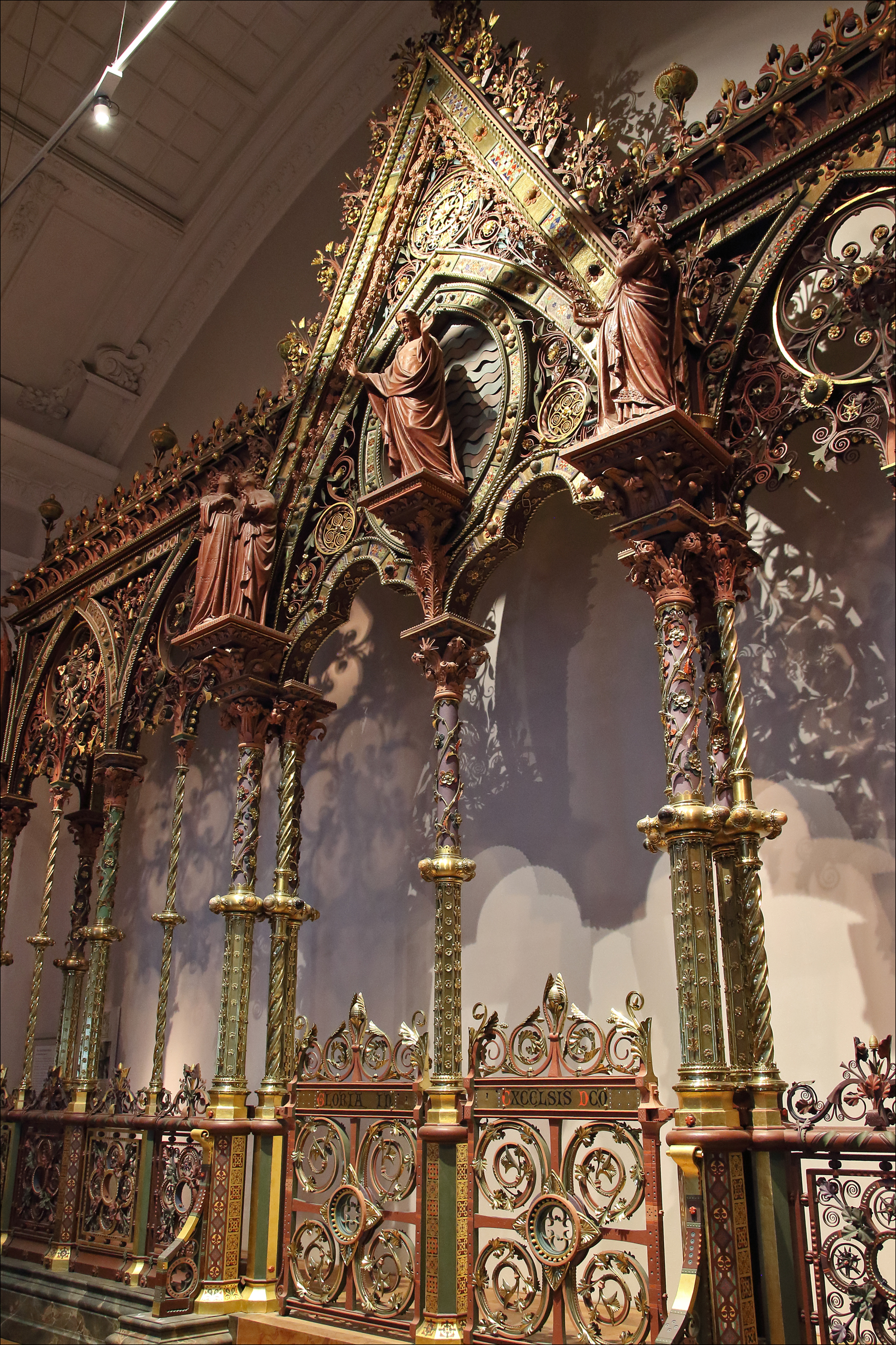 이 전시관은 가운데 있는 거대한 헤러포드 스크린Hereford Screen[사진]을 중심으로 왼쪽으로는 영국의 철 공예품이, 오른쪽으로는 유럽 대륙의 철 공예품이 전시되어 있습니다. 중세부터 현대에 이르기까지 다양한 용도와 형태의 것들이 있는데, 보시면 대번 어느 시기인지 감이 올 겁니다.