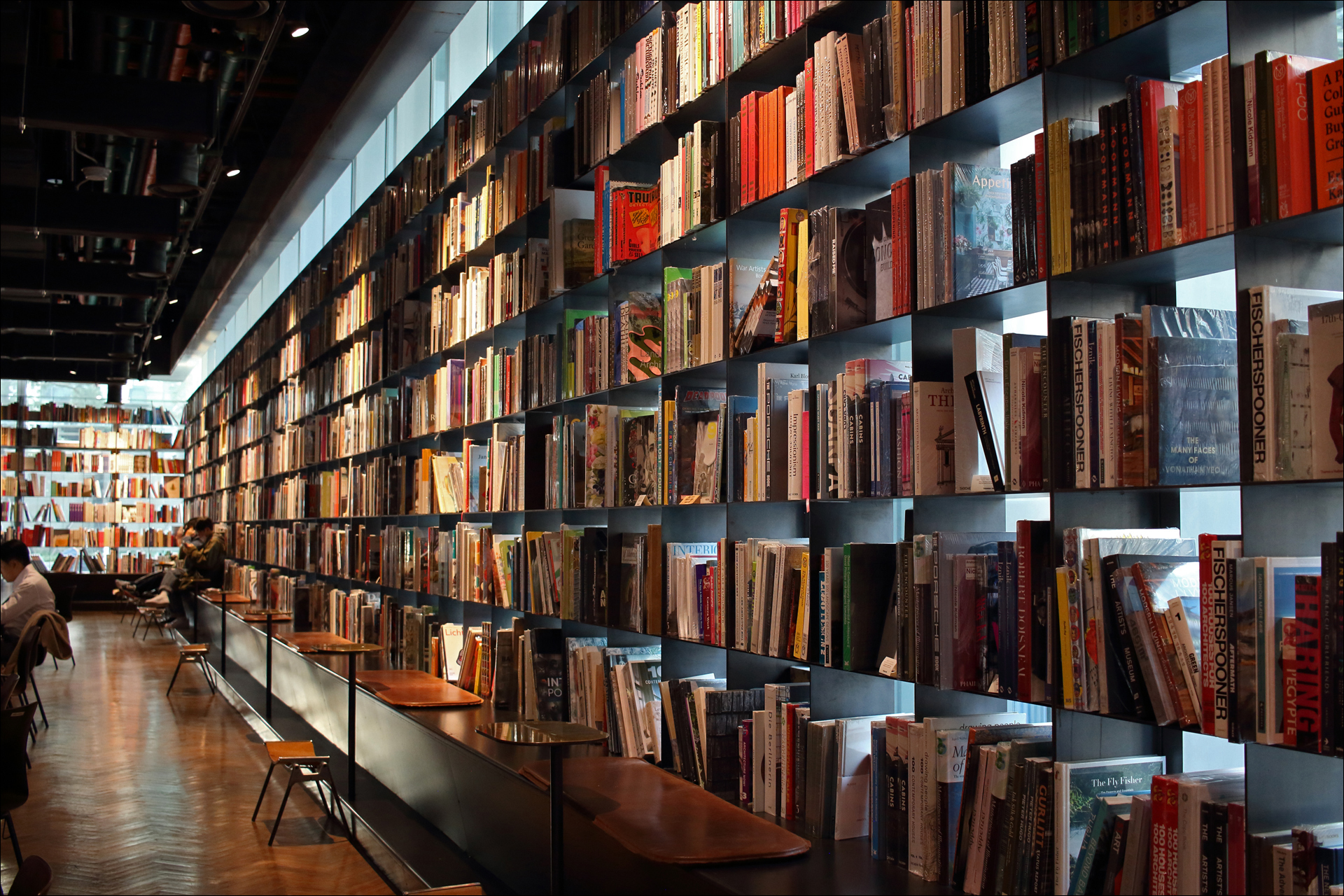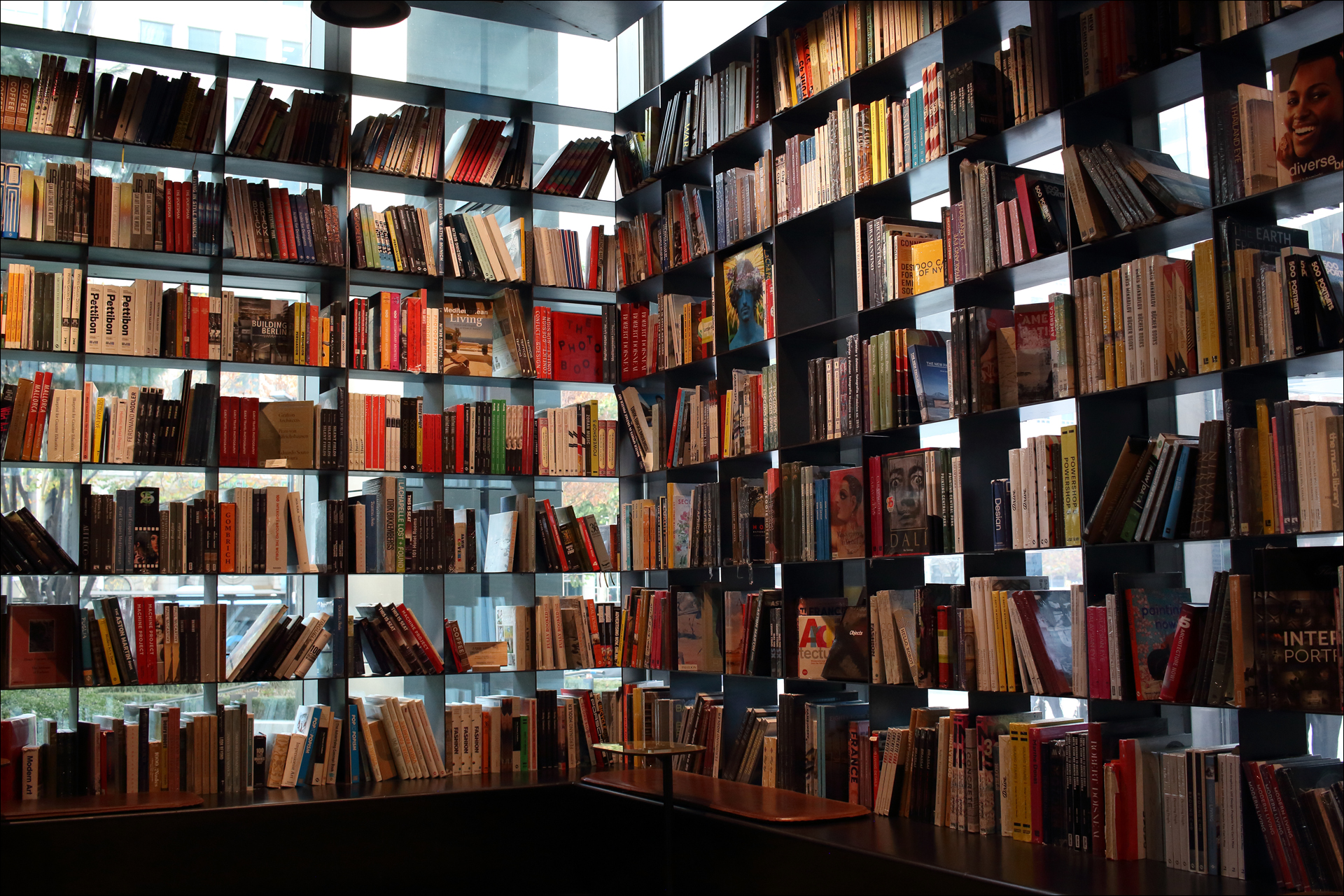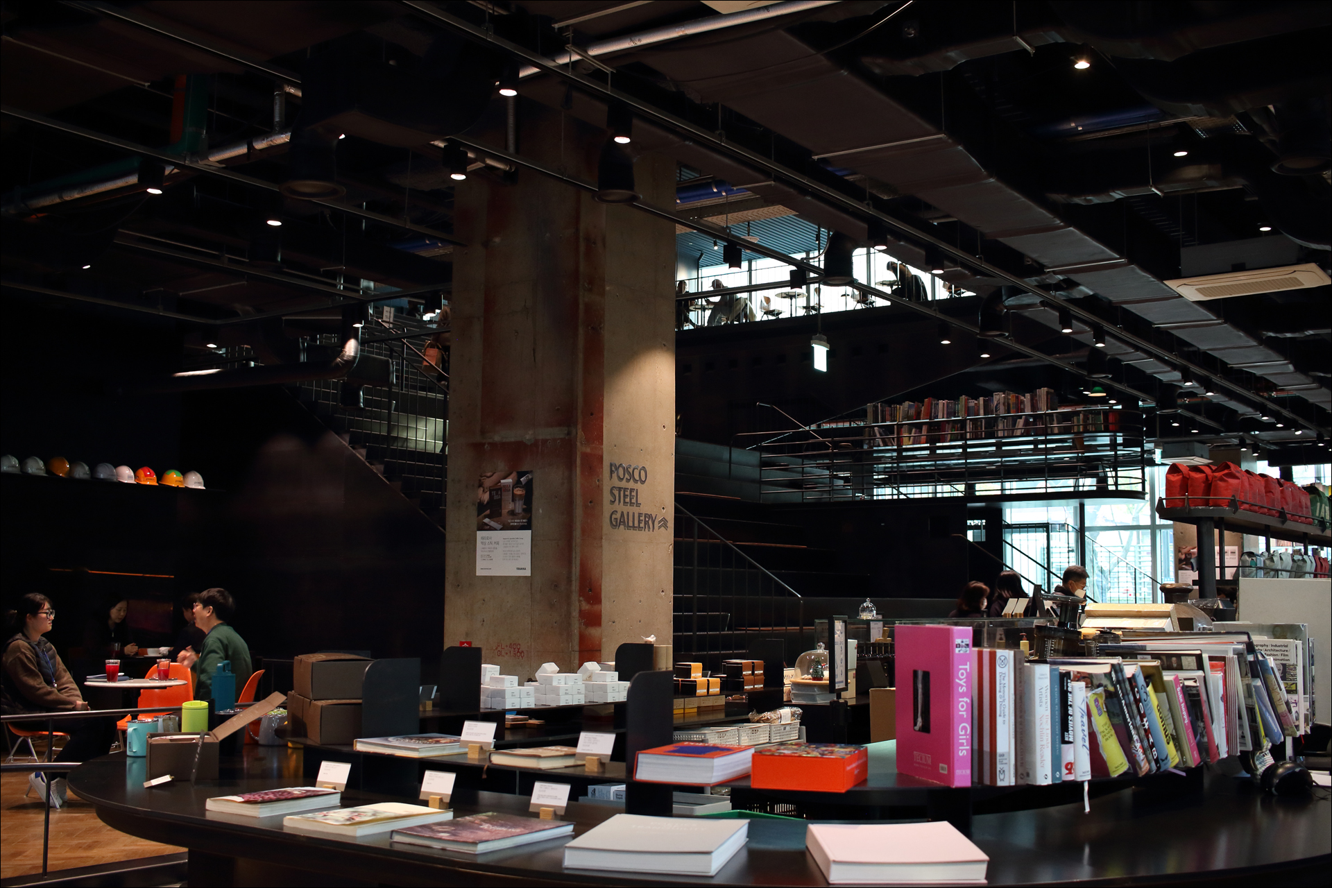 <카페꼼마>가 문학작품 위주로 서가를 꾸몄다면 이 <테라로사> 포스코센터점은 미술, 건축, 인테리어, 영화, 사진, 광고, 패션 등의 시각 예술 서적과 요리책들로 채웠습니다. 거의 다 원서이고요. 두 북카페가 느낌이 다릅니다. <카페꼼마>는 문인을 위한 카페, <테라로사> 포스코센터점은 예술가를 위한 카페랄까요. 포스코 창립 50주년 기념으로 <테라로사>를 초대해 철을 주主 인테리어 소재 삼아 문 열었다고 하지요. 진열된 1만권의 원서들 모두 포스코 소유이고요.
