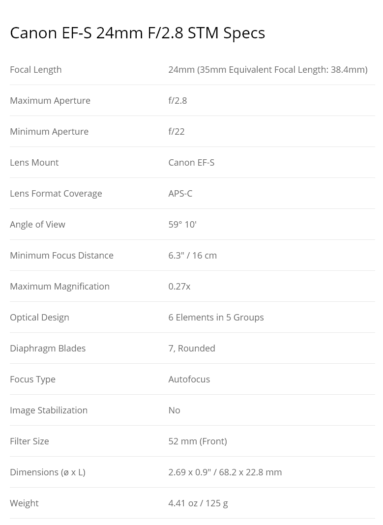 캐논 EF-S 24mm [38.4mm] f/2.8 STM 단렌즈 사용 소감