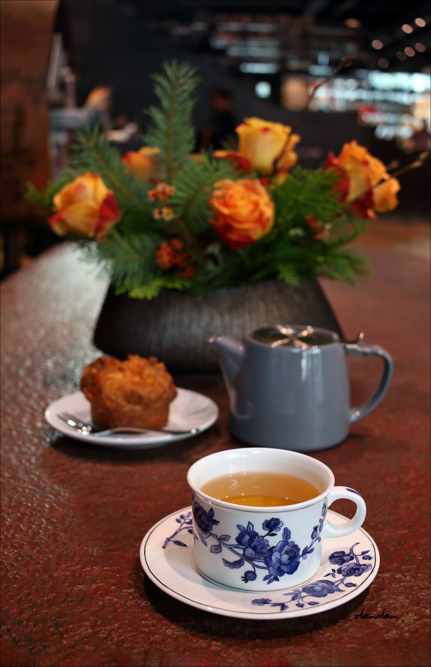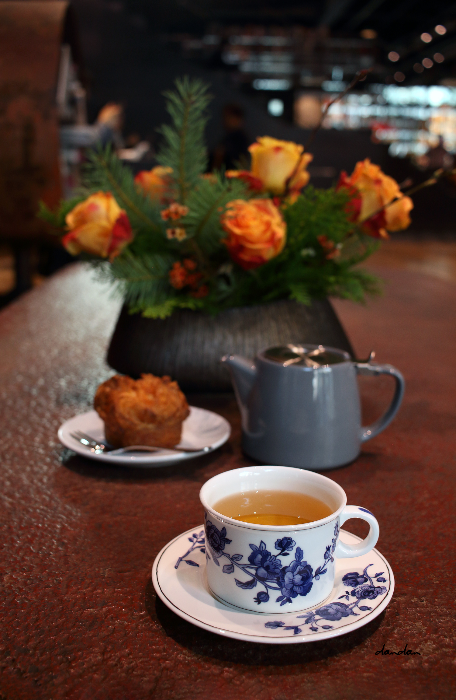 음식 사진을 중시하는 단단이므로 어떤 렌즈든 음식 사진이 어떻게 나오는가가 초미의 관심사입니다. 광각 렌즈라서 그런지 찻잔과 찻주전자도, 저 뒤의 퀸 아망 담은 접시도, 각각 오른쪽과 왼쪽 아래로 살짝 처지고 있죠. 왜곡이 거슬리면 렌즈 보정을 해야겠지요. 성격 좋은 다쓰베이더한테 보여주었더니 이 정도는 봐줄 수 있다는 입장이고, 까타리나 단단은 렌즈 보정을 하고 싶어집니다. ㅋ 중앙에 그릇 하나만 놓고 찍는 경우에는 문제 없겠습니다. 무엇보다, 의자를 벗어나지 않고 앉은자리에서 찍을 수 있다는 게 큰 장점이네요. 심도 표현도 과하지 않아서 좋고요.