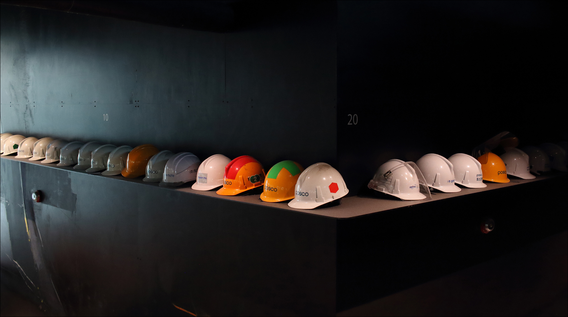 사진 왼쪽 중앙에 플라스틱 안전모 늘어놓은 것 좀 보세요.