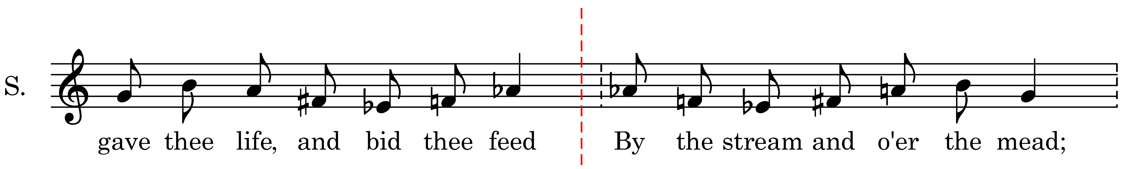 1. 맨 먼저, 주제가 되는 한 마디짜리 선율을 제시합니다. 잘 보면 빨간 점선을 기준으로 상하 좌우 불완전한 대칭을 하고 있습니다.