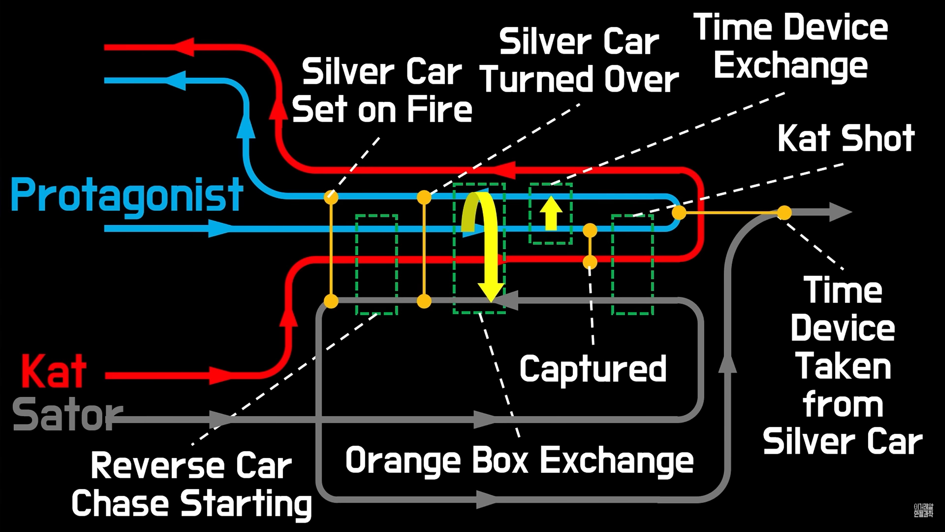▲ 자동차 추격 장면의 시간 흐름과 사건들.