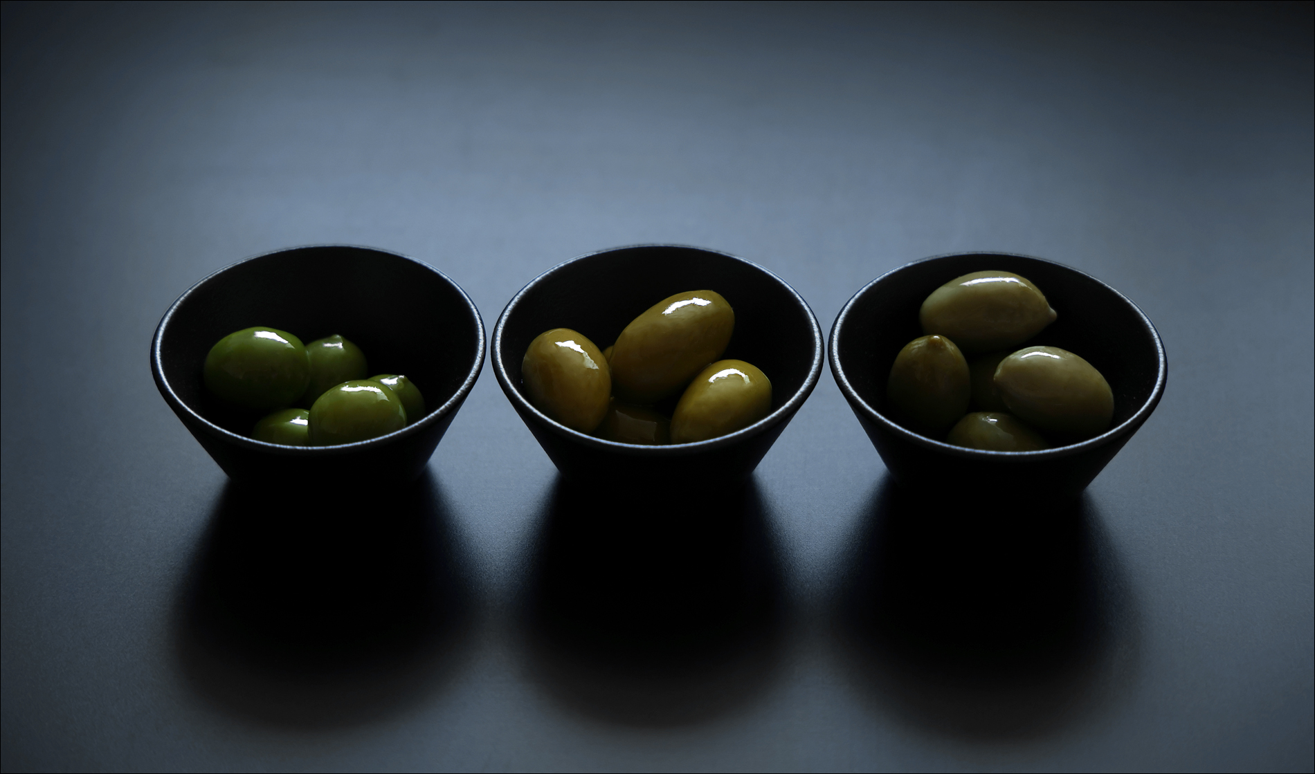 올리브는 사실 맛보지 않고 색만 봐도 맛을 대략 짐작할 수 있기는 합니다. 녹색이 선명할수록 얌전하면서 고소한 맛이 나고, 누런 기운이 많이 들수록 우리 장아찌나 김치 같은 짜릿한 맛이 나거든요. 블랙이나 퍼플 올리브는 맛과 질감이 또 많이 다르고요. 표리부동해 껍질은 살짝 질깃하고 속살은 훨씬 무르죠. 그린 올리브는 술안주, 생염장육과 치즈의 곁들이, 스낵으로. 퍼플 올리브는 요리나 샐러드에. 이렇게 생각하시면 편합니다.