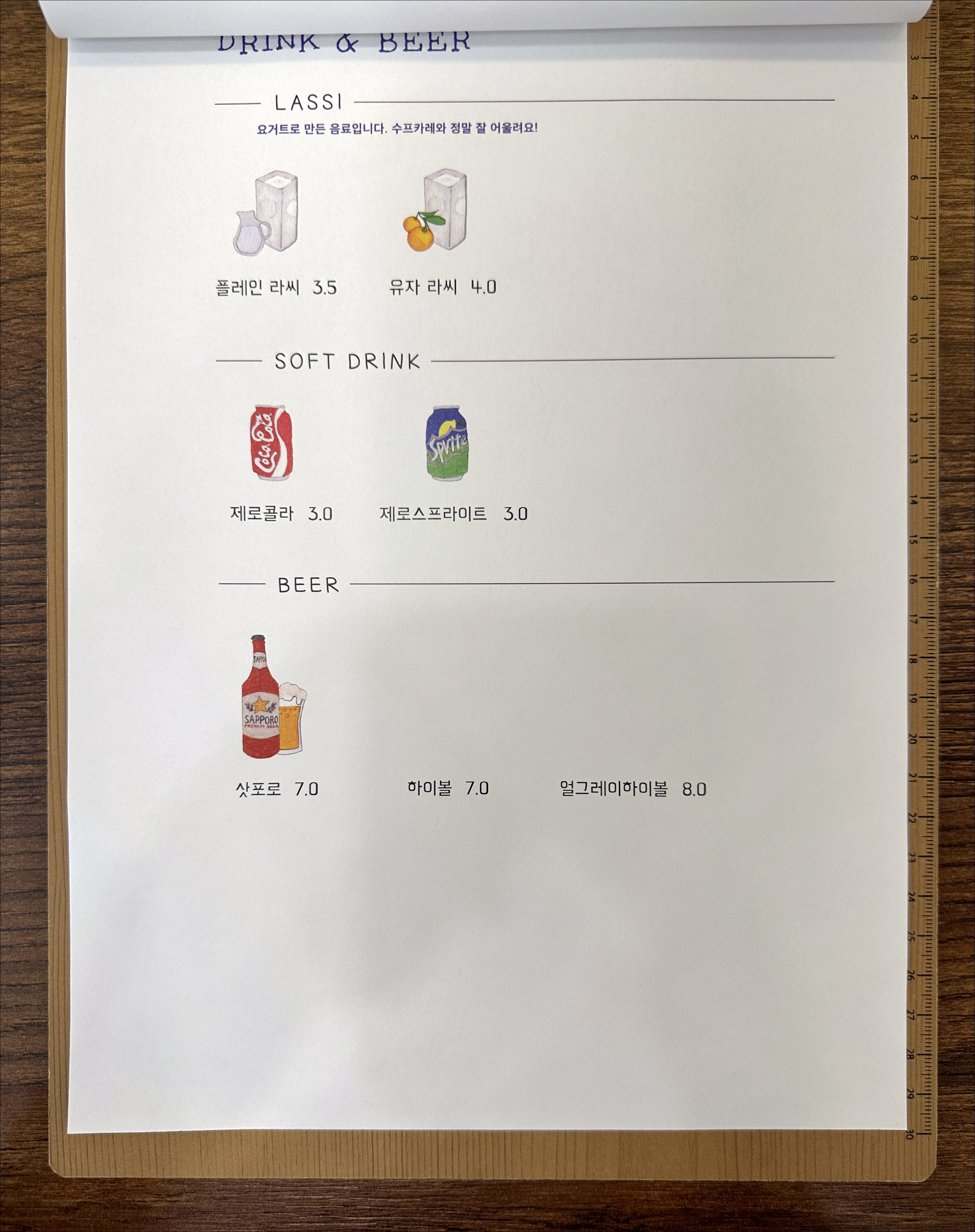 국물 맛은 어떤 카레를 시키든 다 똑같습니다. 차림표에는 코코넛 밀크를 추가 비용 내고 넣을 수 있다고 인쇄해 놓고는 선택 불가로 고쳐 놓았습니다.