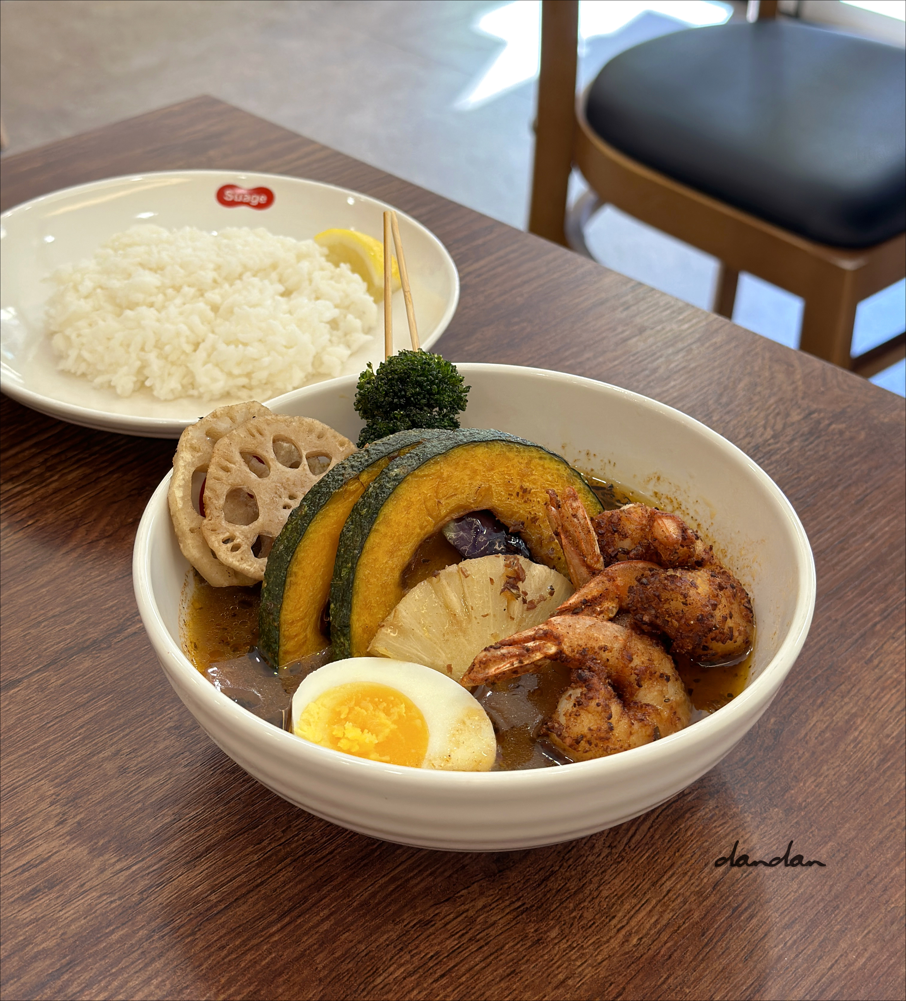 인도 커리나 동남아시아 국물 커리들에 비하면 향신료spices와 향초herbs 카리스마는 태부족한 데다, 일본 인스탄트 고형 카레 맛이 나면서 들척지근해 감흥이 많이 떨어지는걸요. 이것저것 추가하면 한 그릇에 2만원 가까이 나올 때도 있는데 그 돈만큼 맛있지는 않아요. 채소가 스프카레 국물과 함께 조리돼 국물맛이 배인 게 아니라 어설프게 튀겨져 흐물흐물, 기름만 잔뜩 머금은 채 따로 겉도는 상황이므로 다쓰베이더는 여러 종류의 채소와 국물을 먹는 게 목적이라면 차라리 덴푸라 장인이 제대로 튀겨 내는 모듬 텐동에 일본식 장국을 곁들여 먹는 편이 낫겠다는 입장입니다.