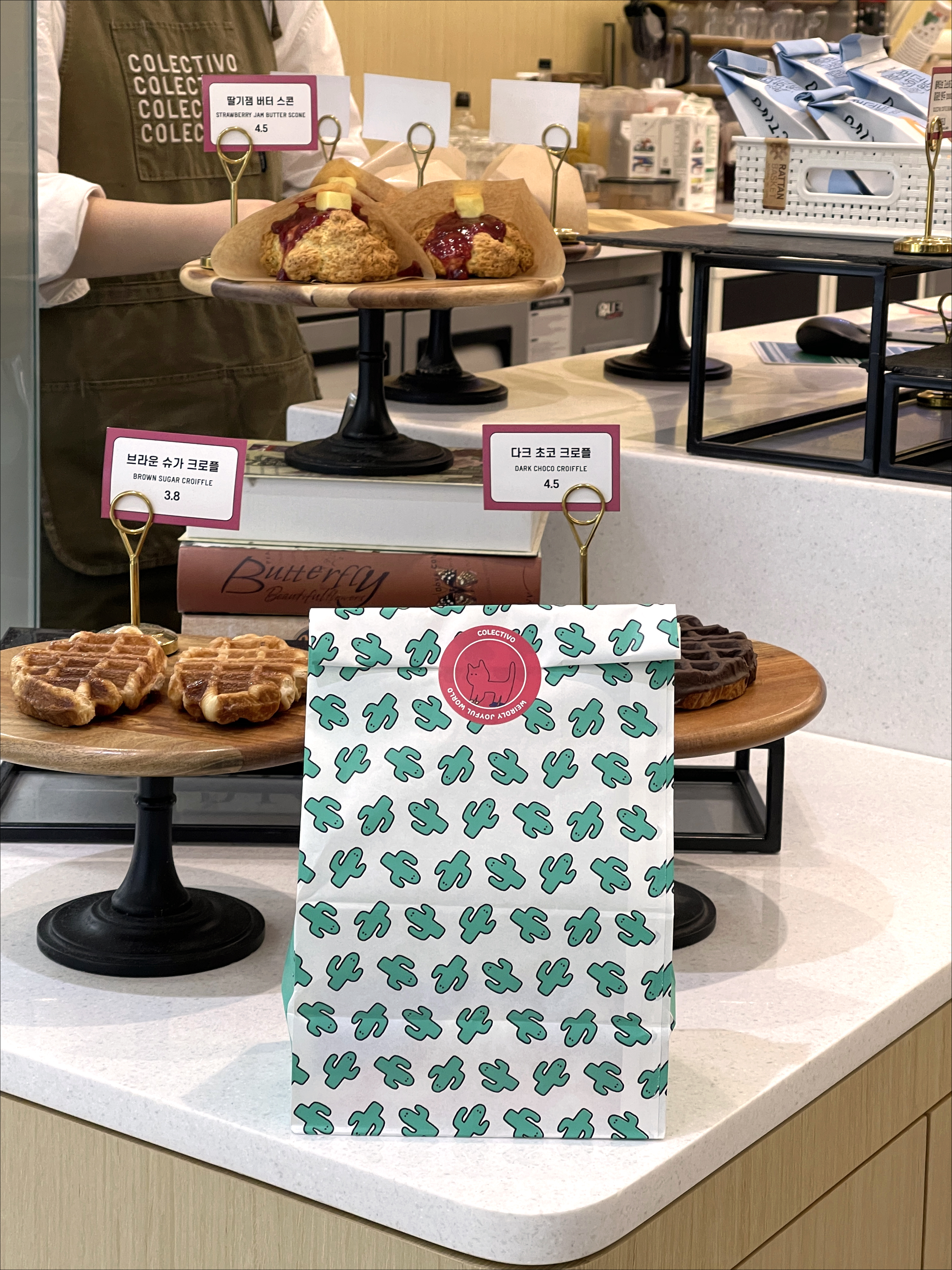 스콘을 신경 써서 내는 집이 있다고 해서 장보러 간 김에 들러보았습니다. 여기 이마트가 규모가 크면서 재미있는 식품들이 많거든요. 2층에는 교보문고도 있고요. 콜렉티보 본점은 한남동에 있고, 분점인 이곳은 2021년 10월에 문을 열었습니다.