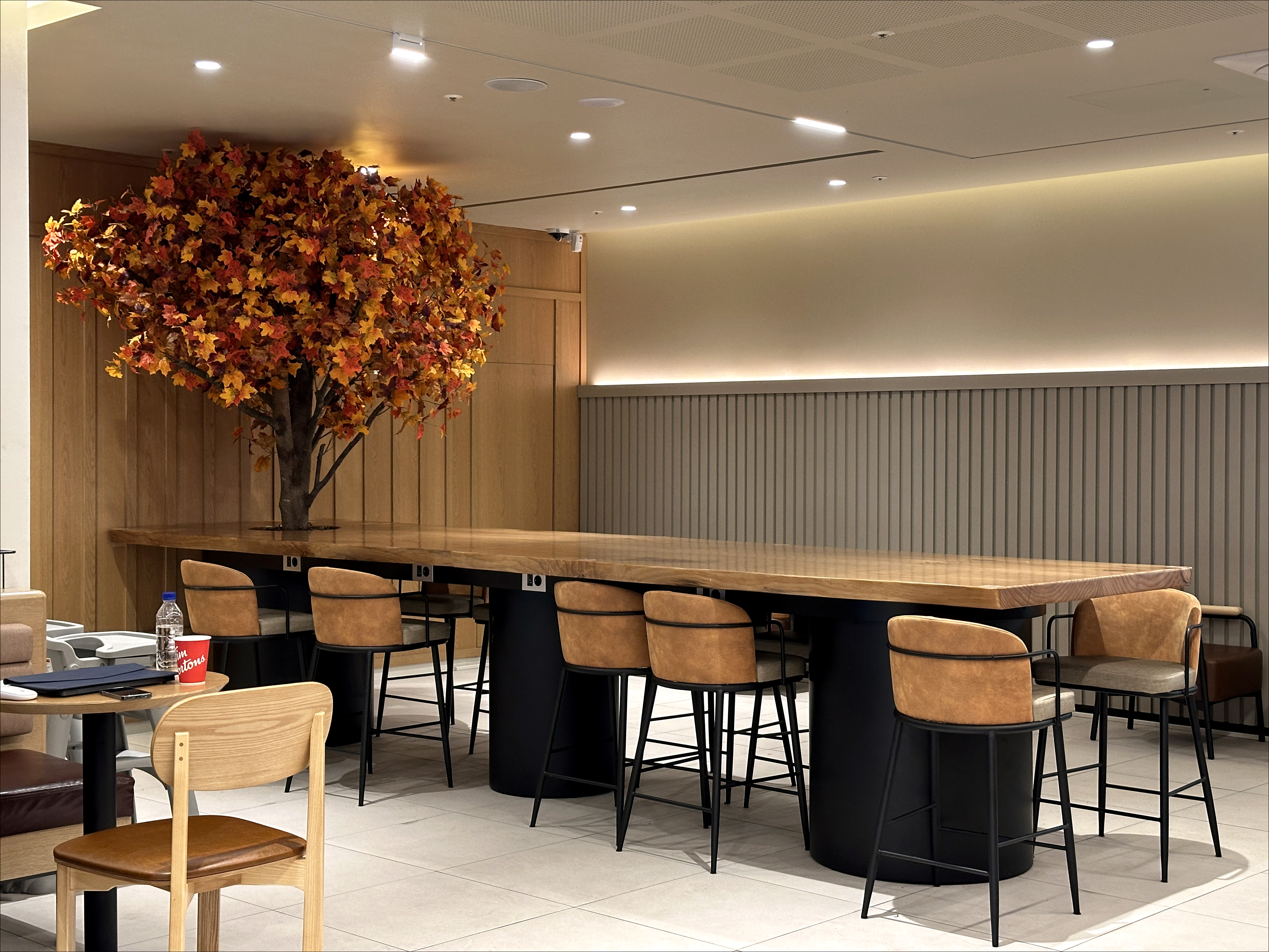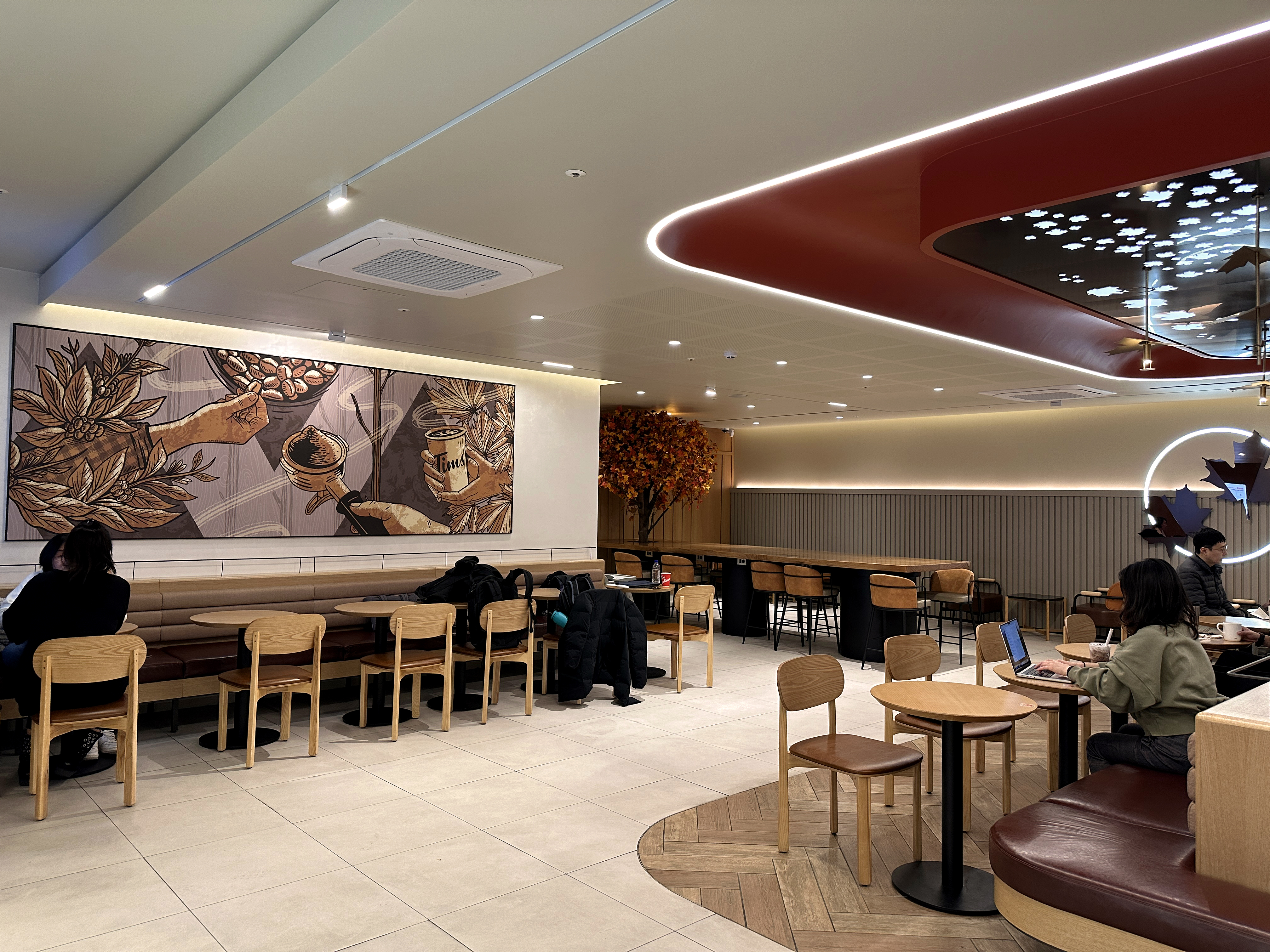인공 단풍나무를 두어 '이거 캐나다 커피 하우스야' 다시 한번 각인.
