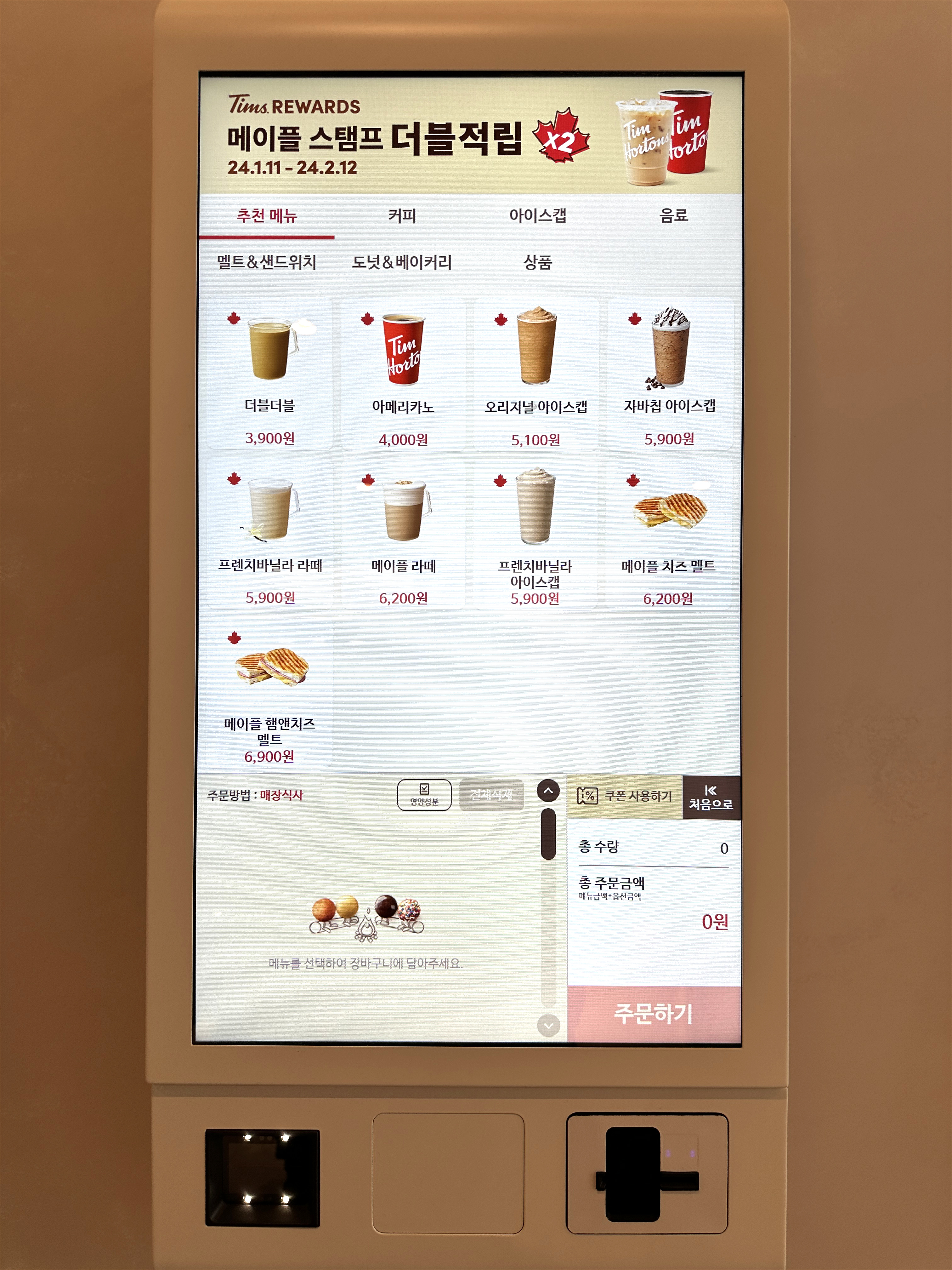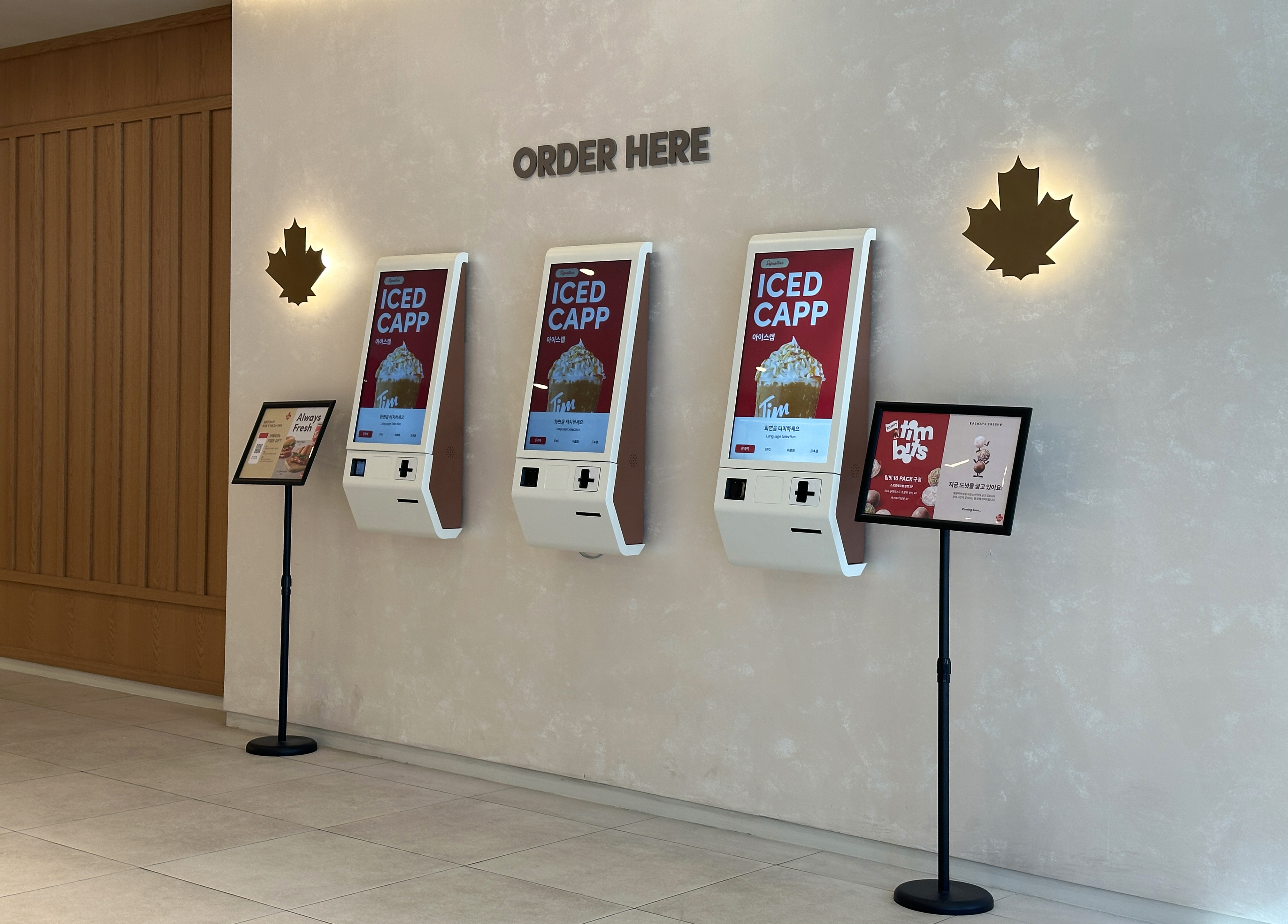 오른쪽에는 주문 키오스크를 벽에 붙여 두었는데,