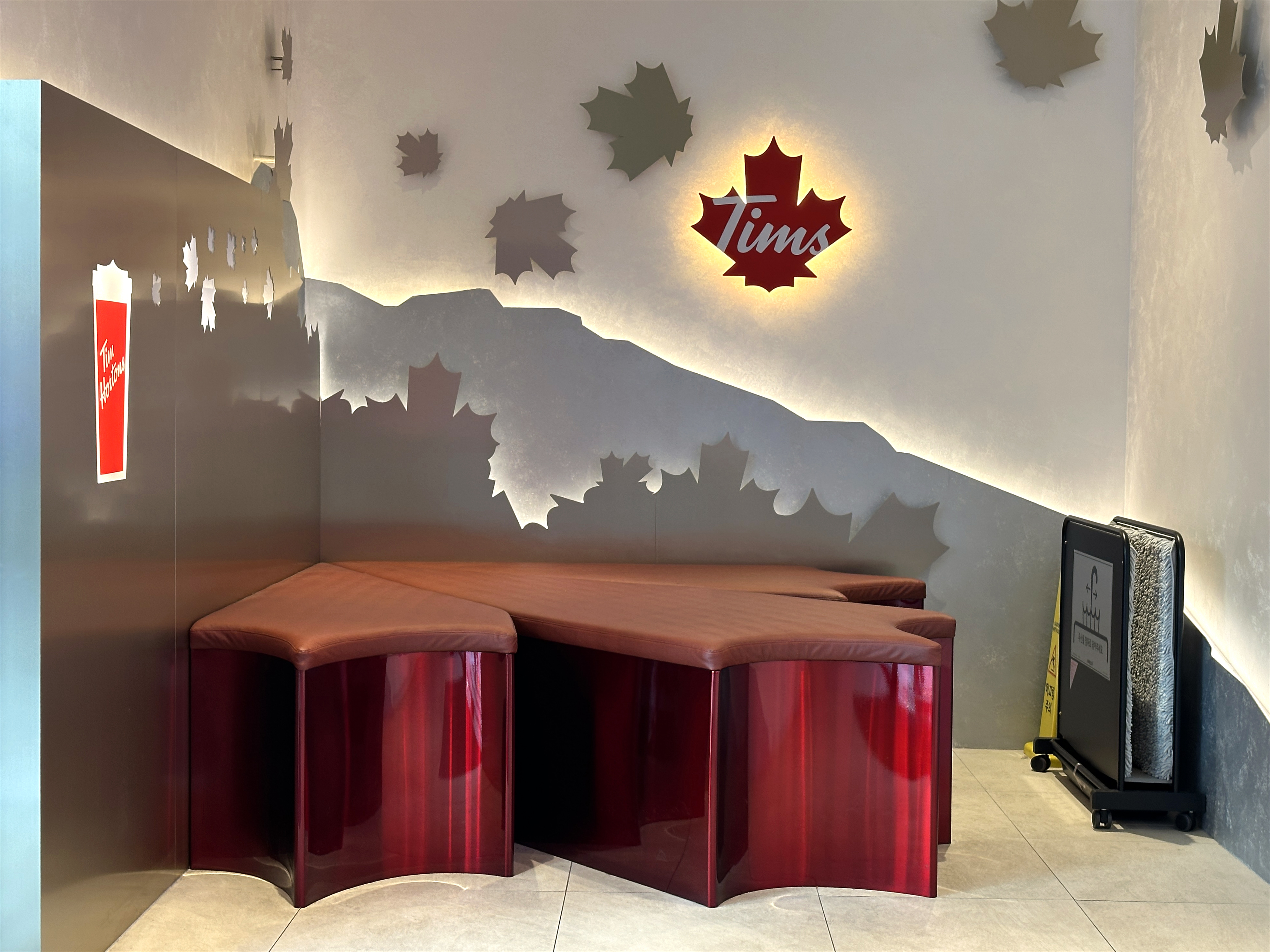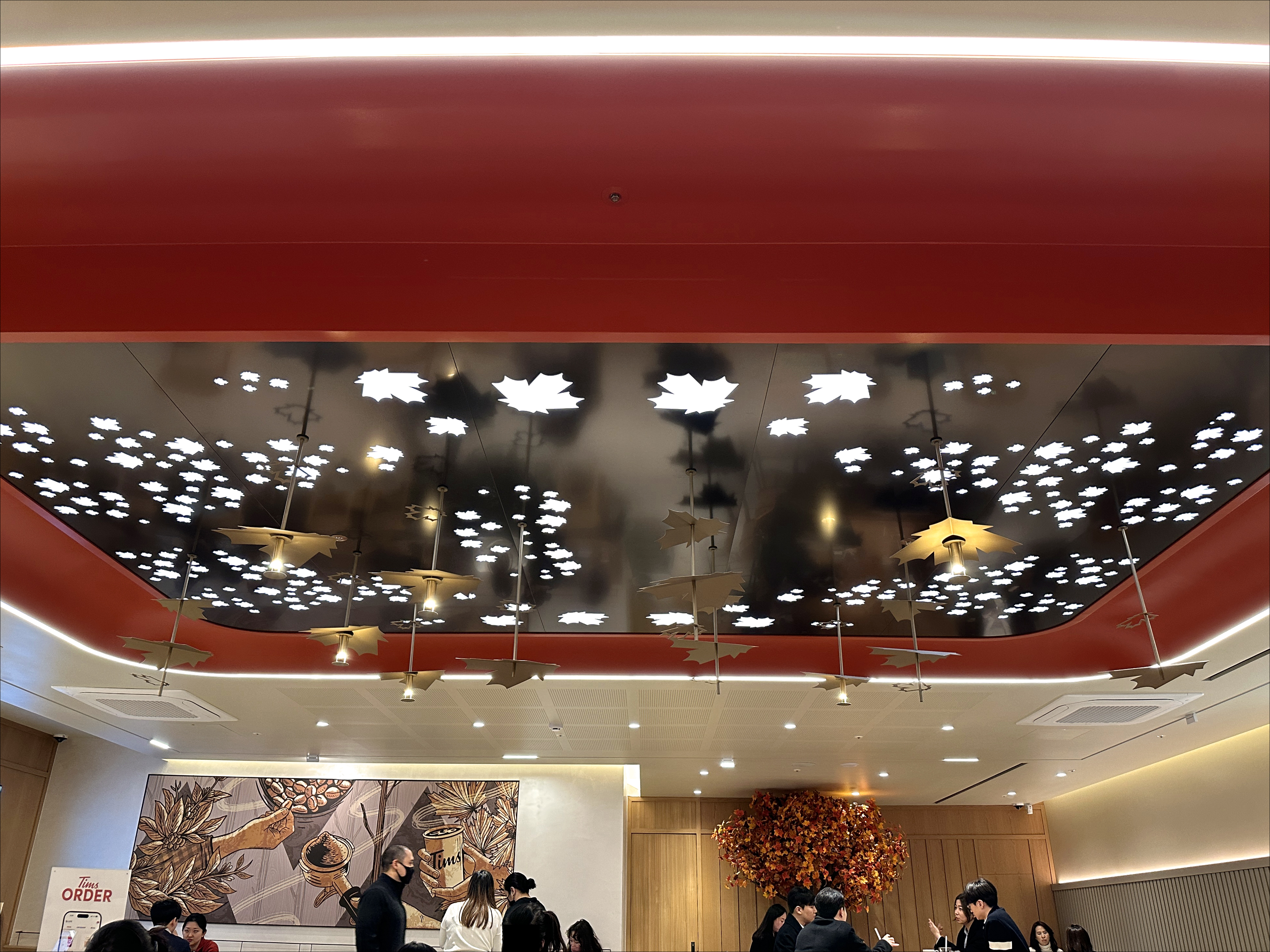 매장 곳곳에 설탕단풍나무Acer saccharum 잎 상징을 두어 단풍국 출신 티를 팍팍 냈습니다.