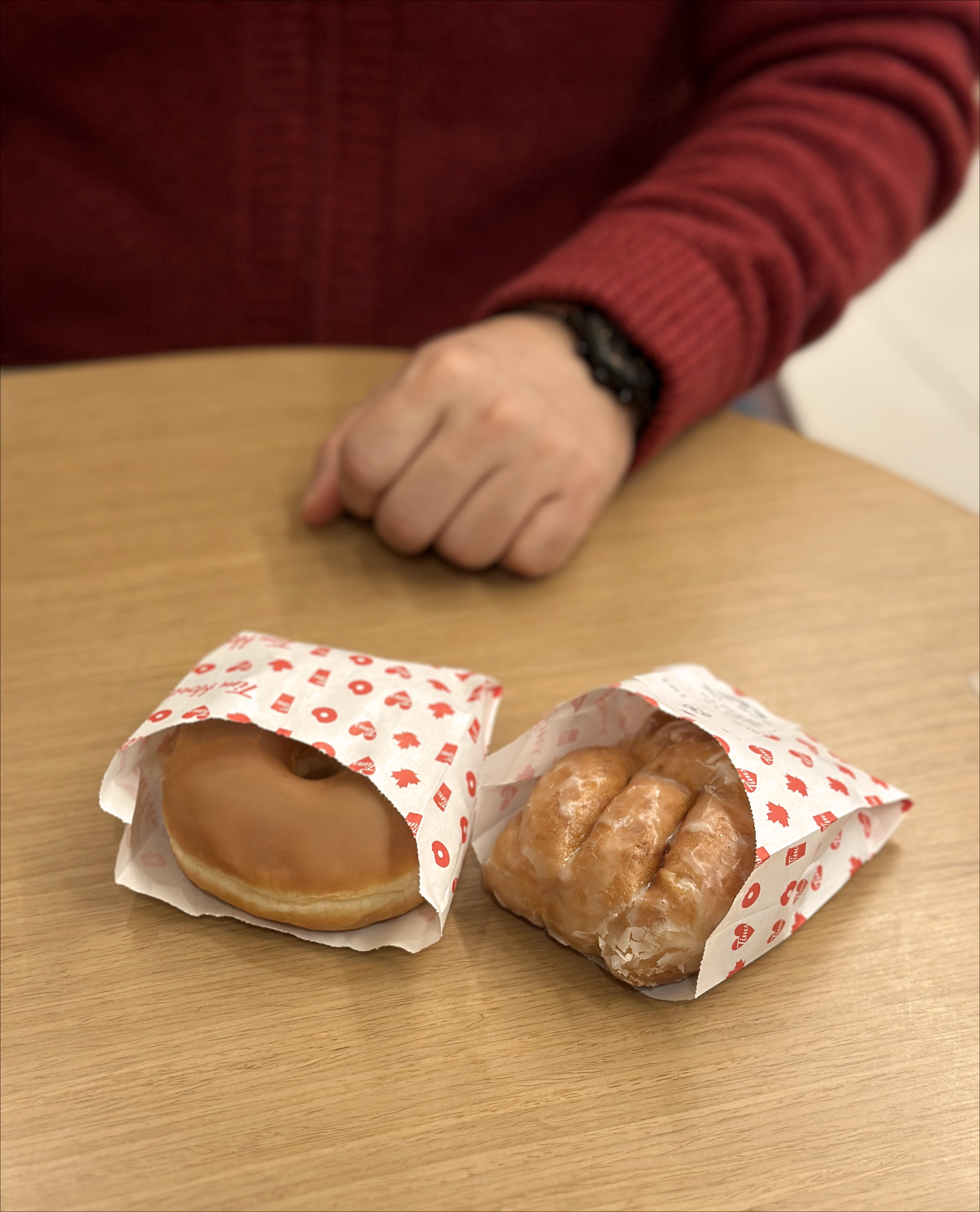 갈 때마다 진열해 놓은 도넛 종류가 조금씩 달라져 있던데, 이 말인즉슨, 멀리서 고생스럽게 이동해 방문을 해도 원하는 도넛을 얻지 못할 수 있다는 거지요. 아침에는 준비가 덜 돼서, 오후에는 다 팔려서 못 보는 도넛들이 있습니다. 구매하고자 하는 도넛 이름을 대면서 언제 나오냐고 물어보면 나오는 시간을 알려주기도 하고, 매대에는 버젓이 진열돼 있으나 키오스크에서 선택이 안 될 때는 카운터에 대고 직접 주문해도 되니 참고하시기 바랍니다.